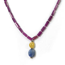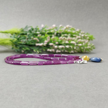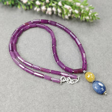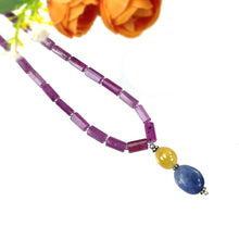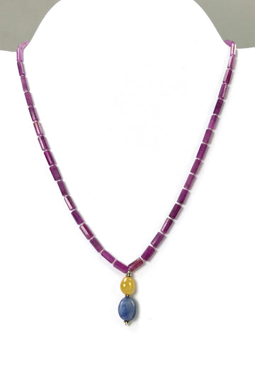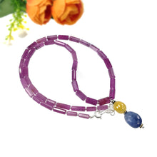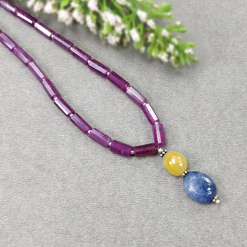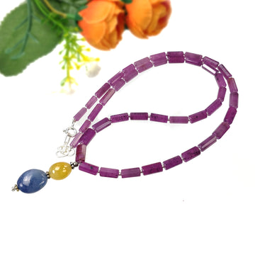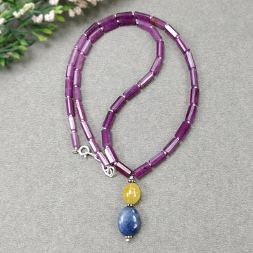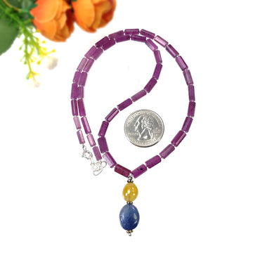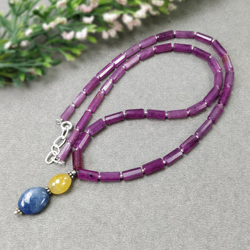 Raspberry SAPPHIRE Gemstone Fancy Cut NECKLACE: 23.00gms Natural Untreated Pencil Blue Yellow Sapphire 925 Sterling Silver 8mm - 14*11mm 19"