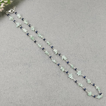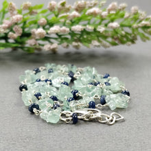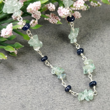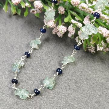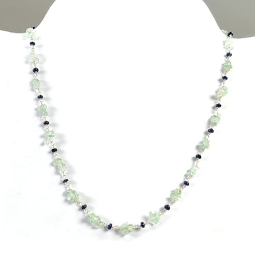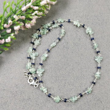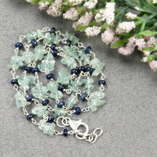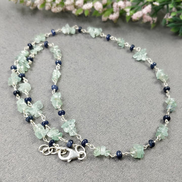 BLUE SAPPHIRE EMERALD Gemstones Raw Uncut Beads : Natural Emerald Blue Sapphire Sterling Silver Chain Necklace 16" Gift For Her