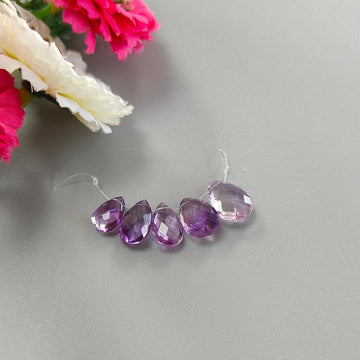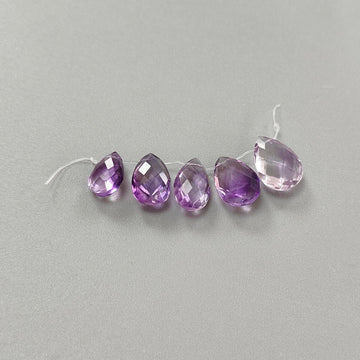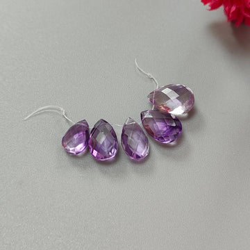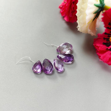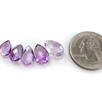 Purple Amethyst Gemstone Checker Cut Loose Beads: 13.30cts Natural Untreated Purple Amethyst Pear Briolette Beads 9*7mm - 13*9mm 5pcs