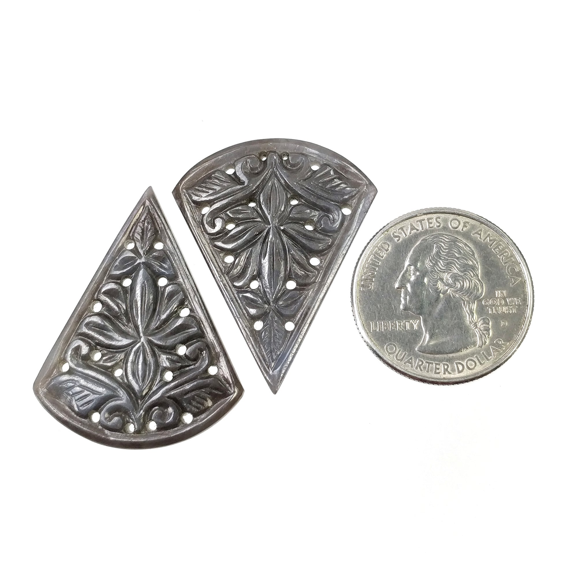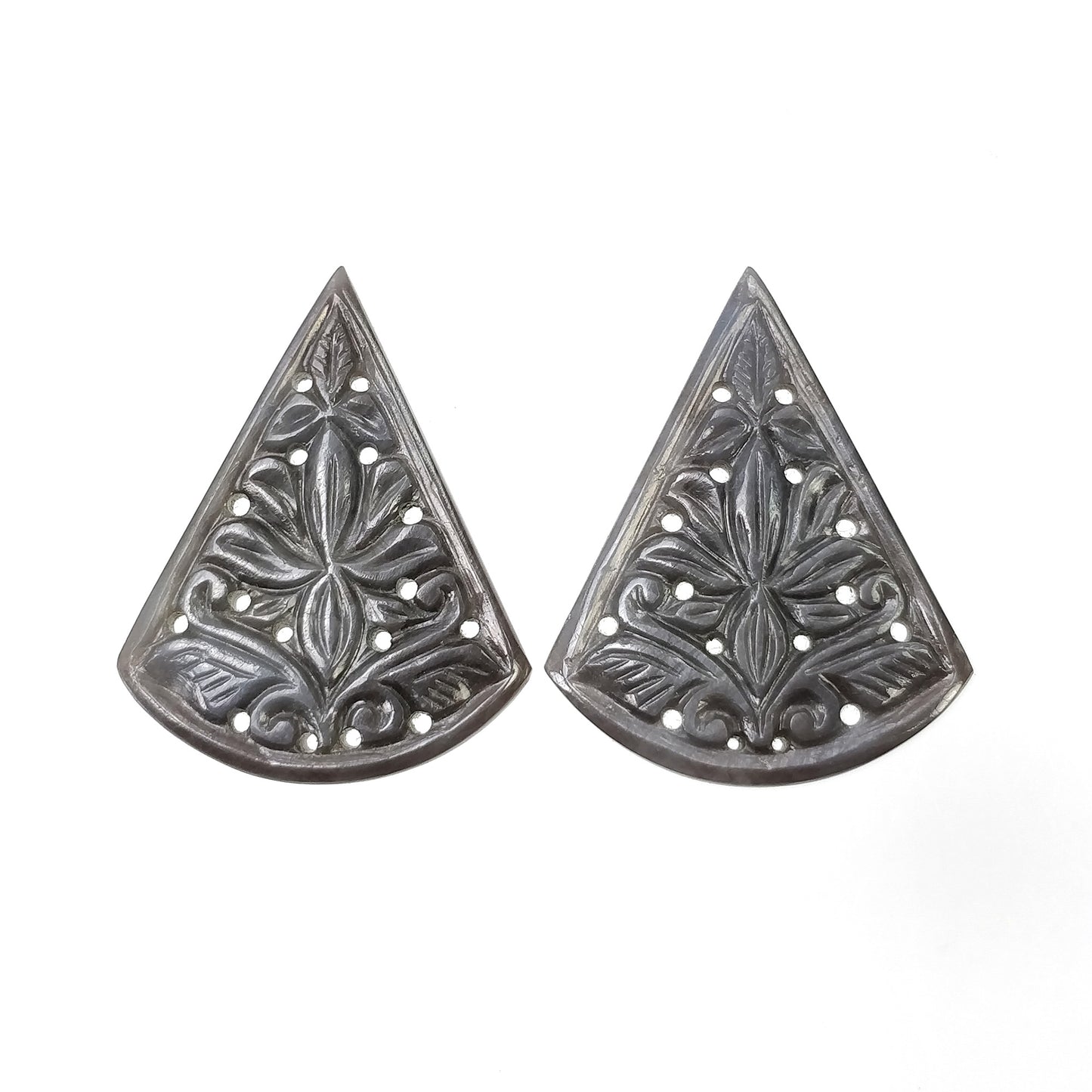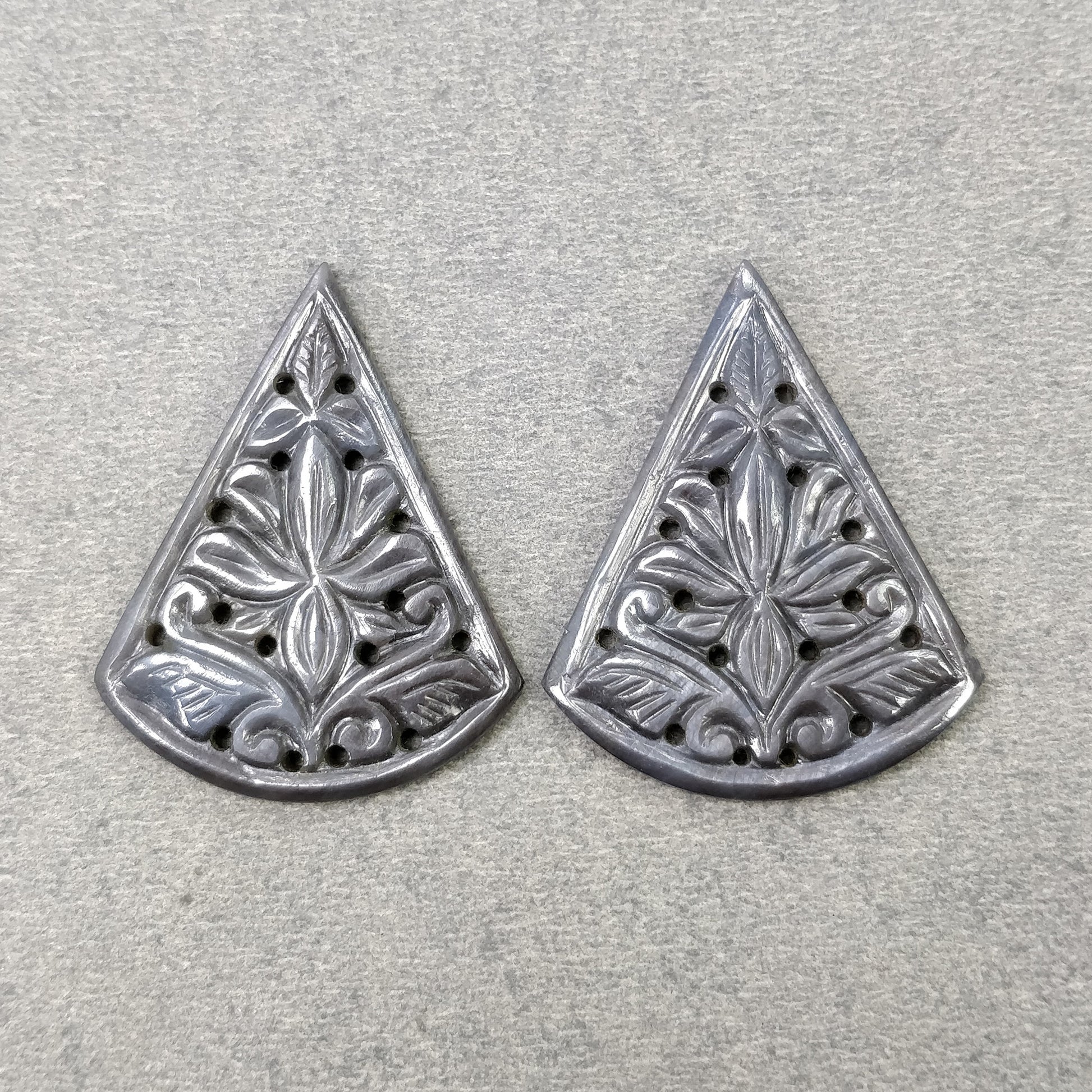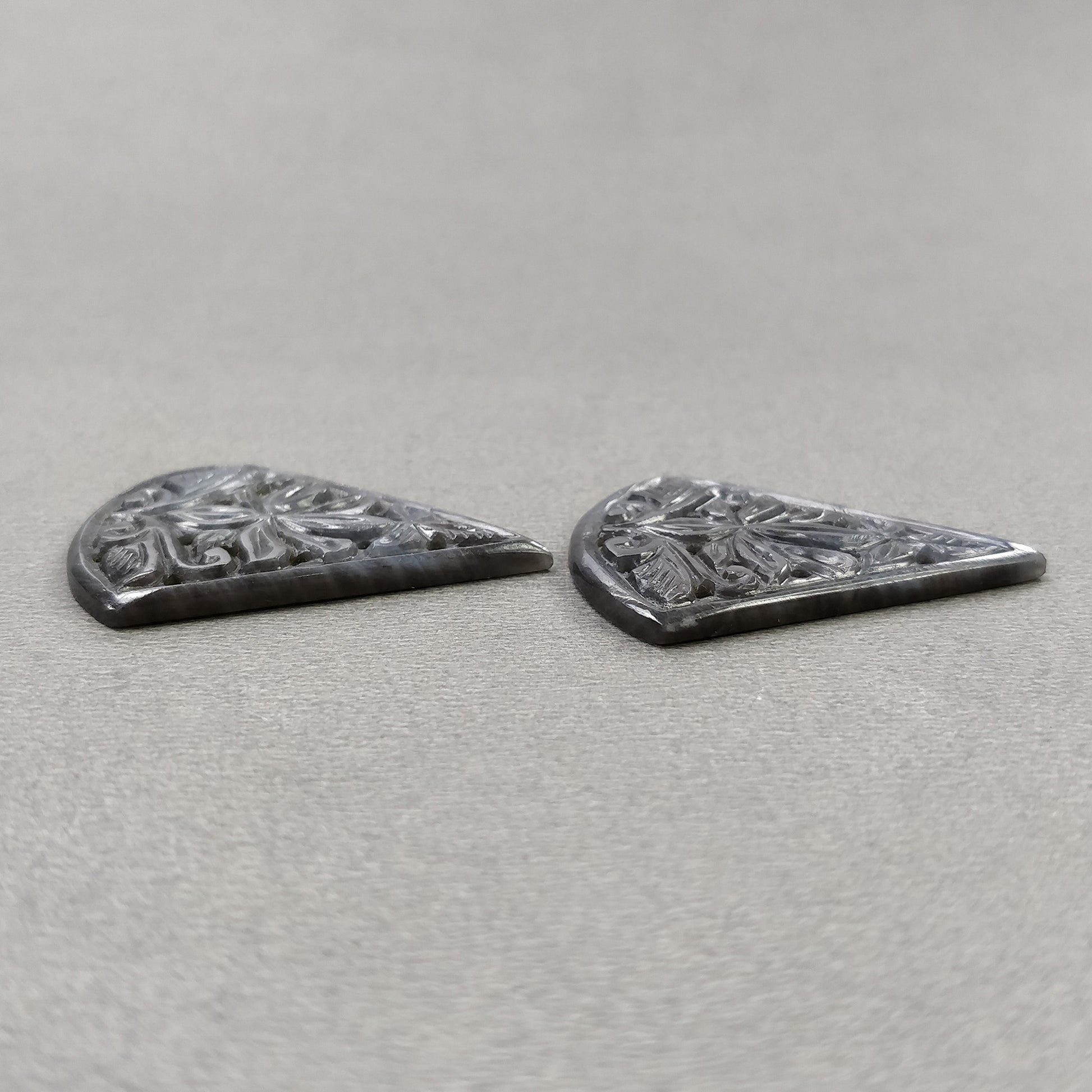 SILVER GRAY SAPPHIRE Gemstone Carving : 53.00cts Natural Untreated Sapphire Hand Carved Triangle Shape 36*28.5mm Pair