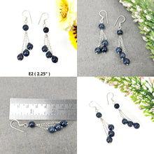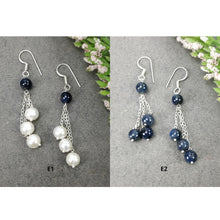 Blue SAPPHIRE & Pearl Gemstone 925 Sterling Silver Beaded Earrings : Natural Untreated Long Drop Dangle Ear Wire Hook Earrings