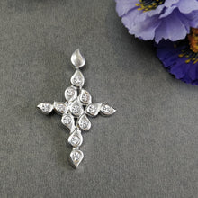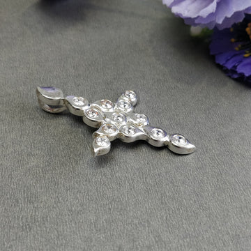 CUBIC ZIRCONIA With 925 Sterling Silver Pendant : 9.90gms Fashion Jewellry Jesus Cross Pendant 2.15" Gift For Her