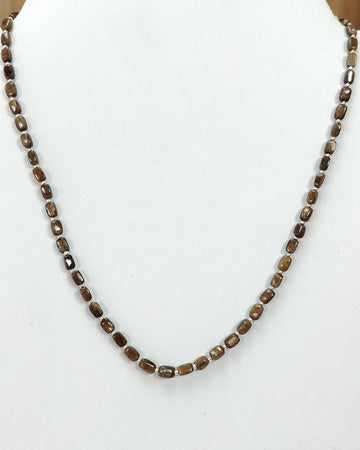 Golden Brown Chocolate Sapphire Gemstone Beads Necklace : 14.26gms 925 Sterling Silver Natural Plain Cushion Sapphire 5*3mm - 6*4mm 19"