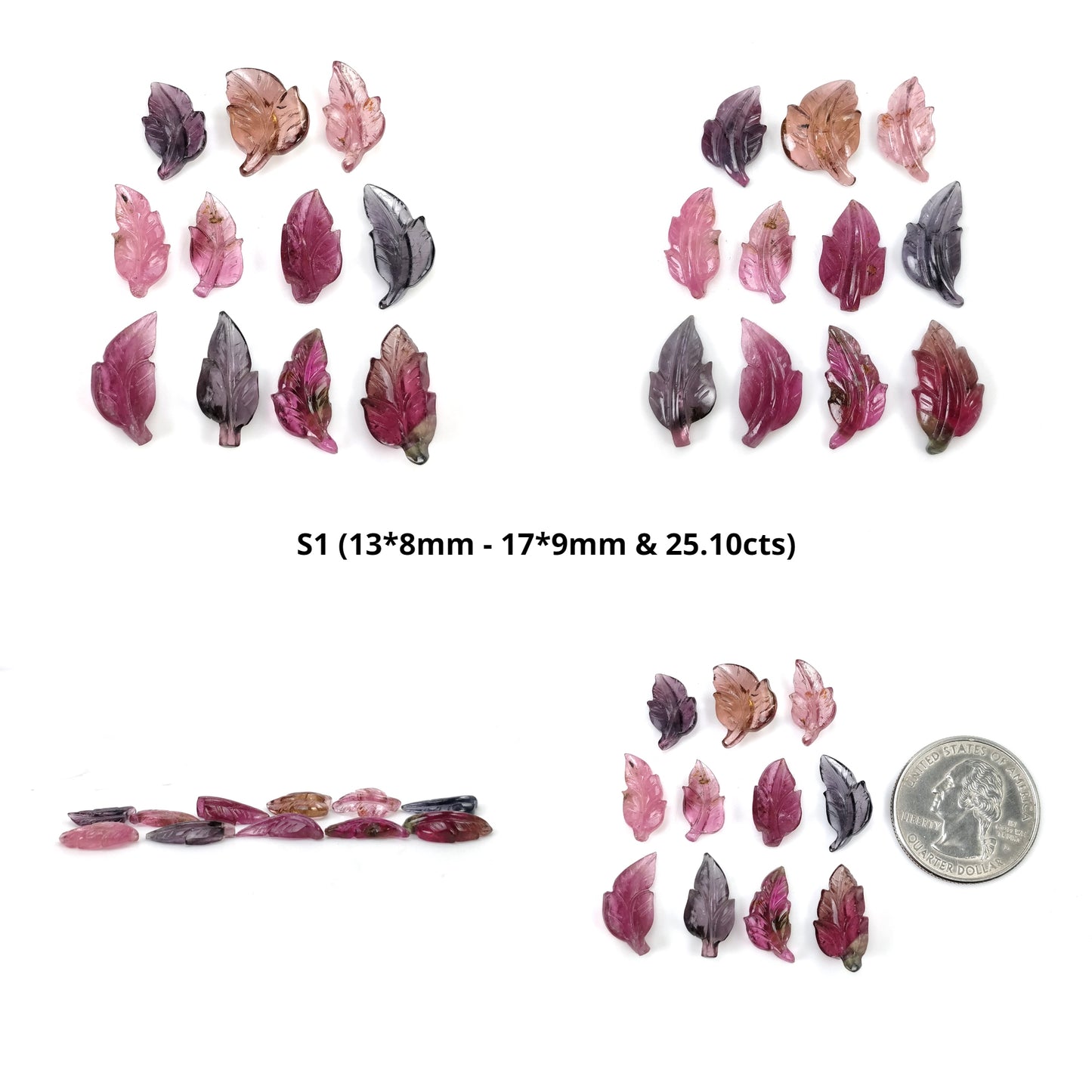 Watermelon TOURMALINE Gemstone Carving : Natural Untreated Unheated Bi-Color Tourmaline Hand Carved Leaf Set