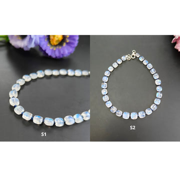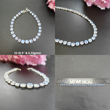 Gemstone Beads Bracelet : Rainbow Moonstone & Blue Sapphire 925 Sterling Sliver Beaded Bracelet Briolette Checker Cut