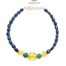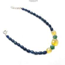 Sapphire & Quartz Opal Beads Bracelet : 6.64gms 925 Sterling Silver Blue Sapphire Yellow Opal Green Quartz Gemstone Plain Checker Cut 8"