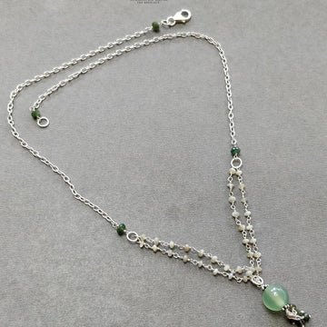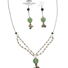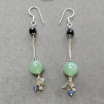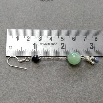 Serpentine & Chrysoberyl Cat's Eye Gemstone With 925 Sterling Silver Jewelry : 14.17gms Natural Round Shape Beaded Earrings Necklace Set
