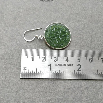 SERPENTINE Gemstone 925 Sterling Silver Earrings : 6.45gms(Approx) Natural Untreated Drop Dangle Round Shape Hook Earrings 1.75"