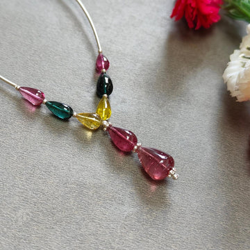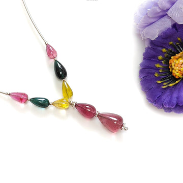 Watermelon Tourmaline Gemstone Loose Beads : 23.00cts Natural Multi Color Tourmaline Plain Teardrops Nuggets 8mm - 12mm