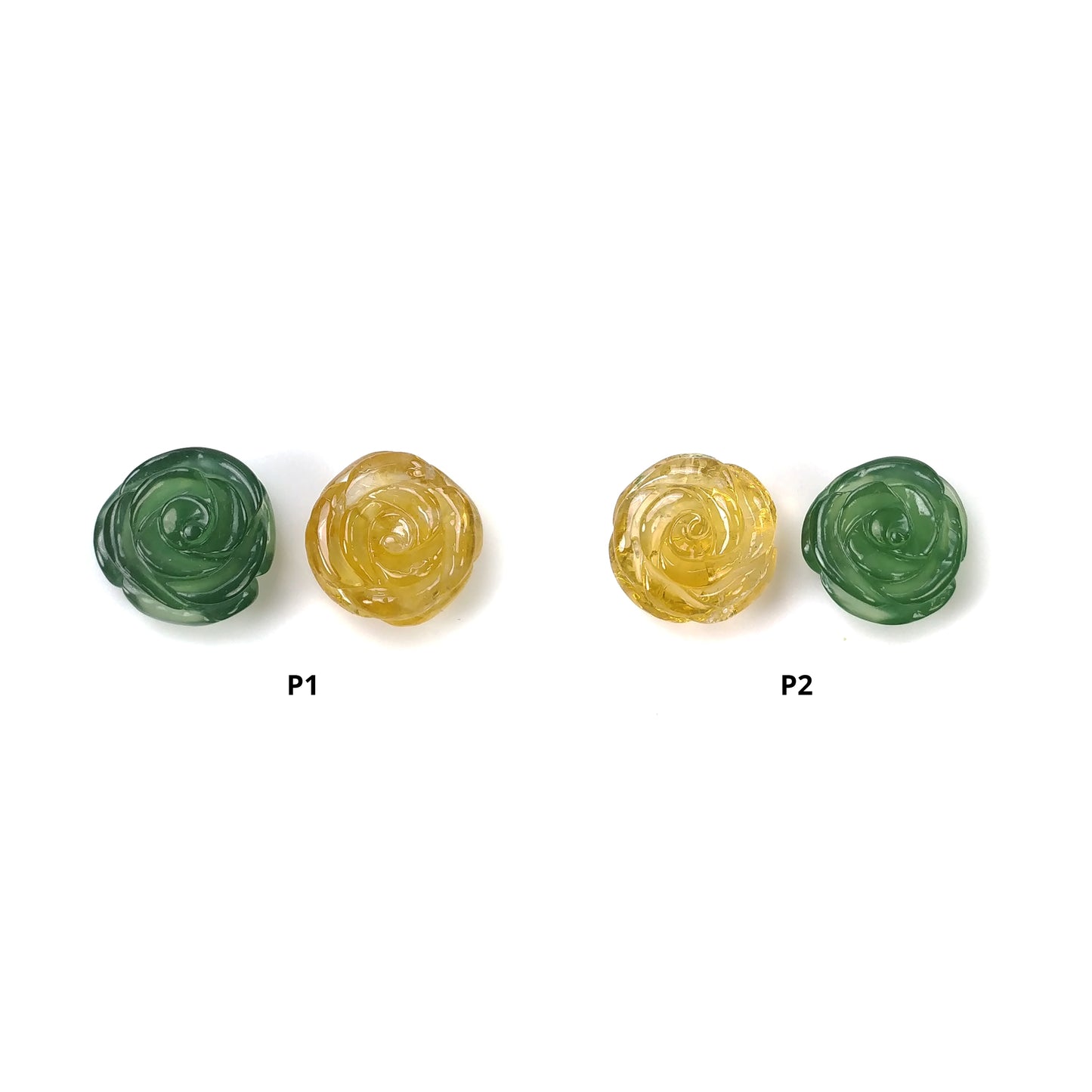 Antigorite SERPENTINE & Yellow CITRINE Gemstone Carving : 31.45cts Natural Untreated Unheated Gemstone Hand Carved FLOWER 15mm - 17mm 2pcs