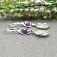 Yellow & PURPLE SAPPHIRE Gemstone 925 Sterling Silver Earrings : 5.31gms Natural Bezel Set Drop Dangle Hook Earring 1.85"