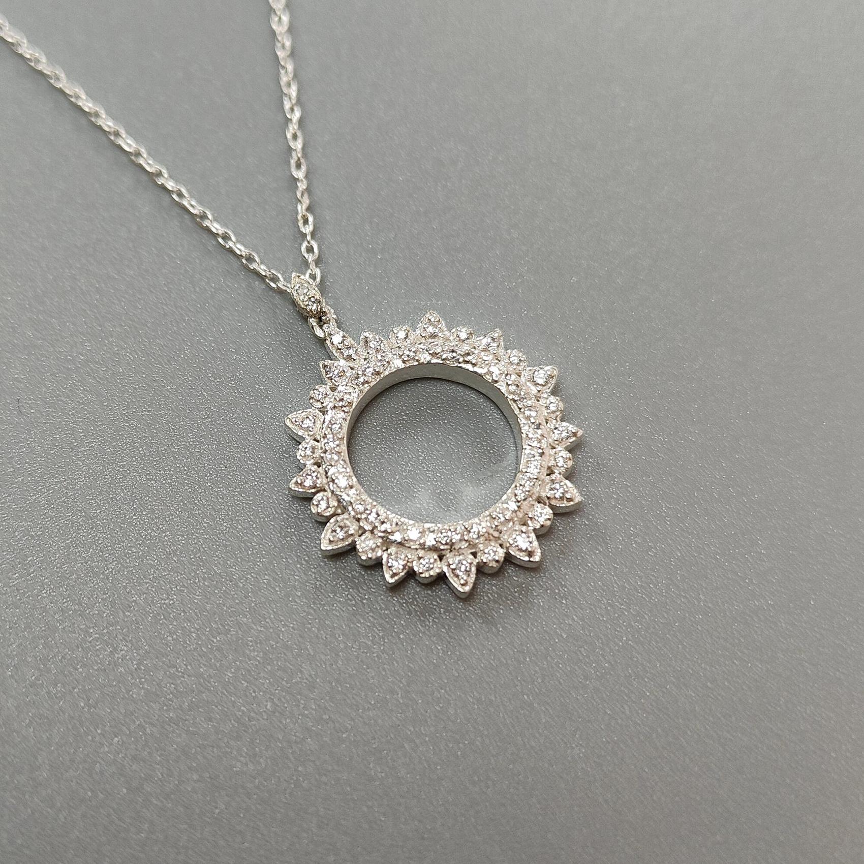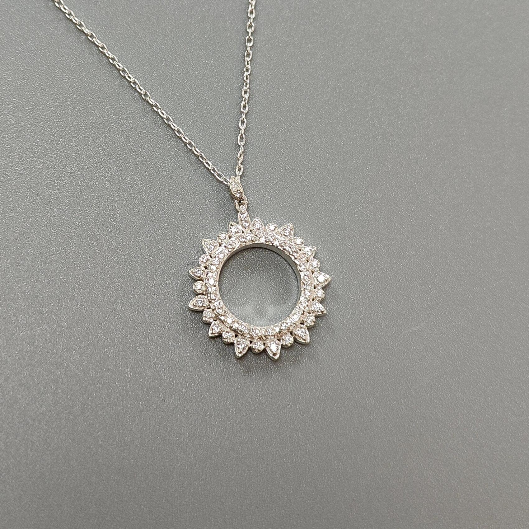 925 Sterling Silver AD Chain Necklace : 6.20gms (Apx) Natural Untreated 925 Sterling Sliver With American Diamond Round Necklace 20" (Apx)