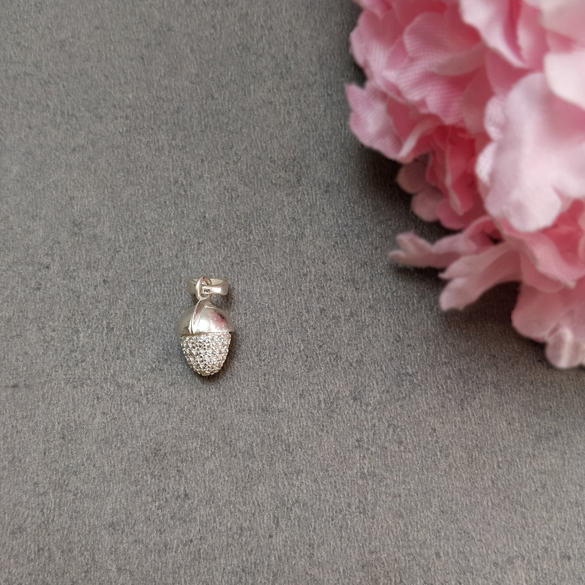 CUBIC ZIRCONIA With 925 Sterling Silver Pendant : 5.00gms(Approx) Fashion Mini Regular Bullet Pendant Normal & Leaf Loop 1" Gift For Her