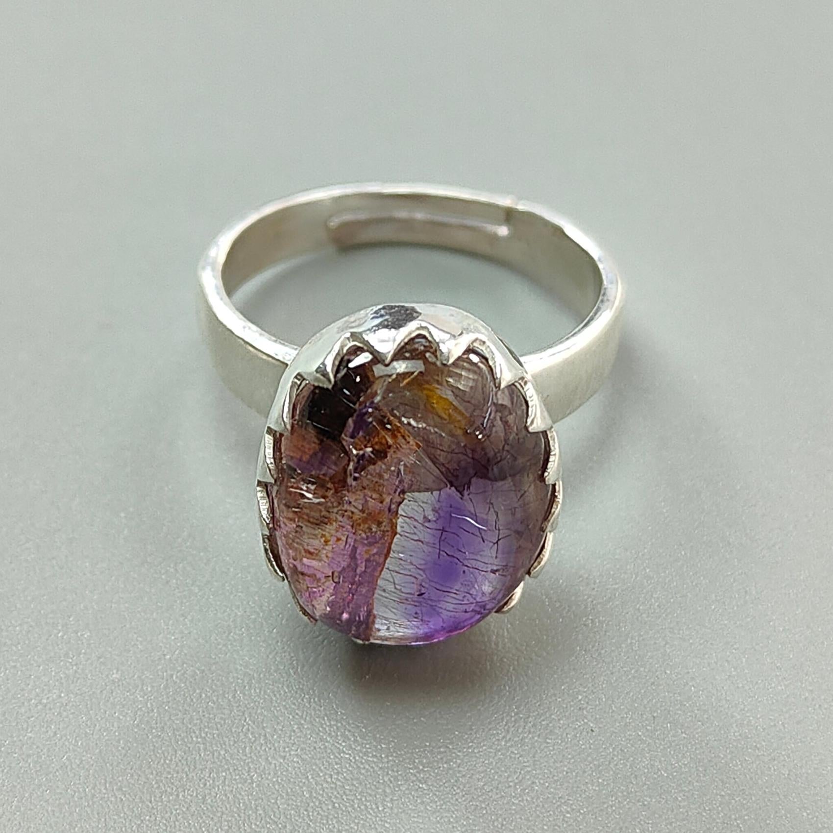 Amethyst Plain Silver Ring: 5.79gms Natural Untreated Super Seven Amethyst Oval Shape Plain 925 Sterling Silver Bezel Set Adjustable Ring
