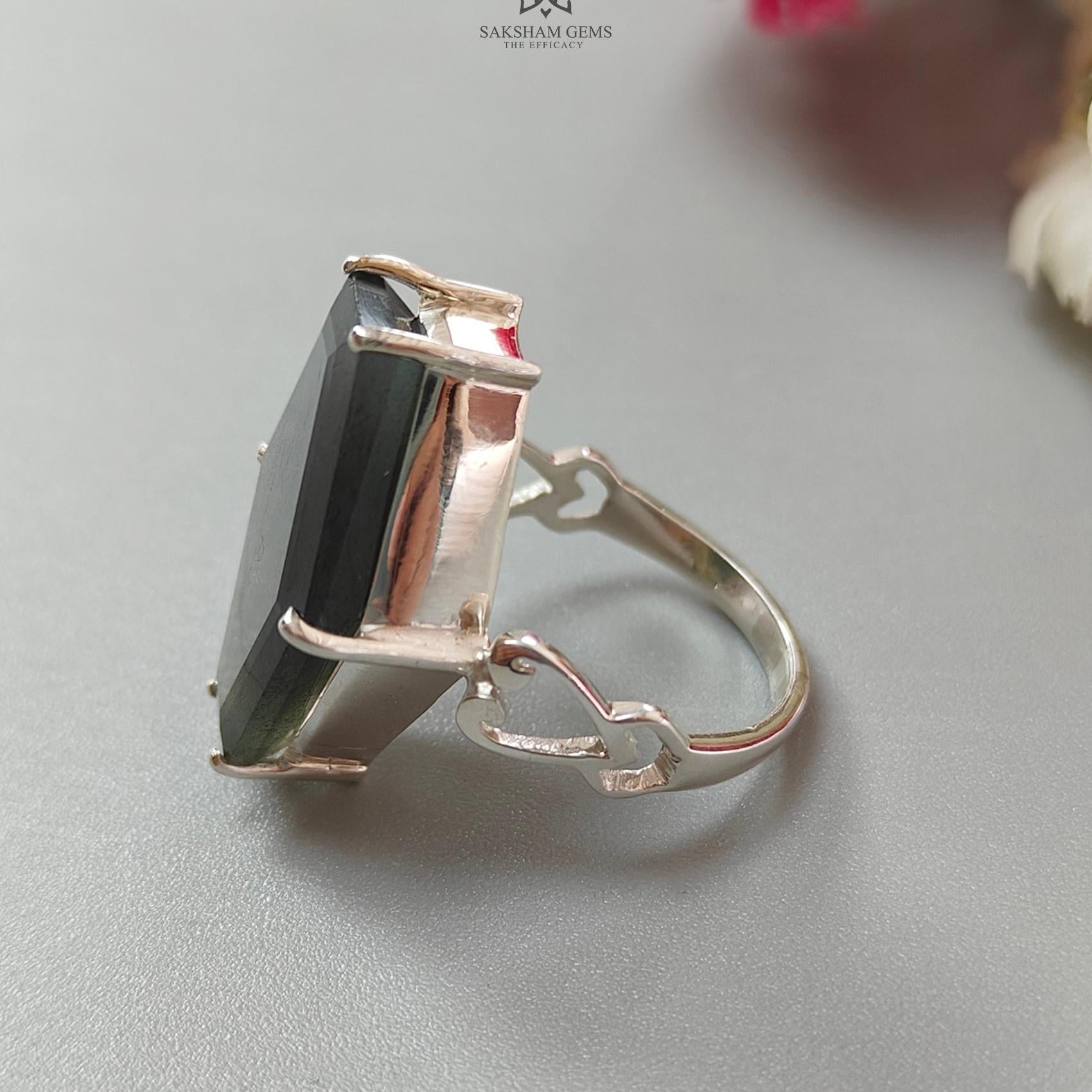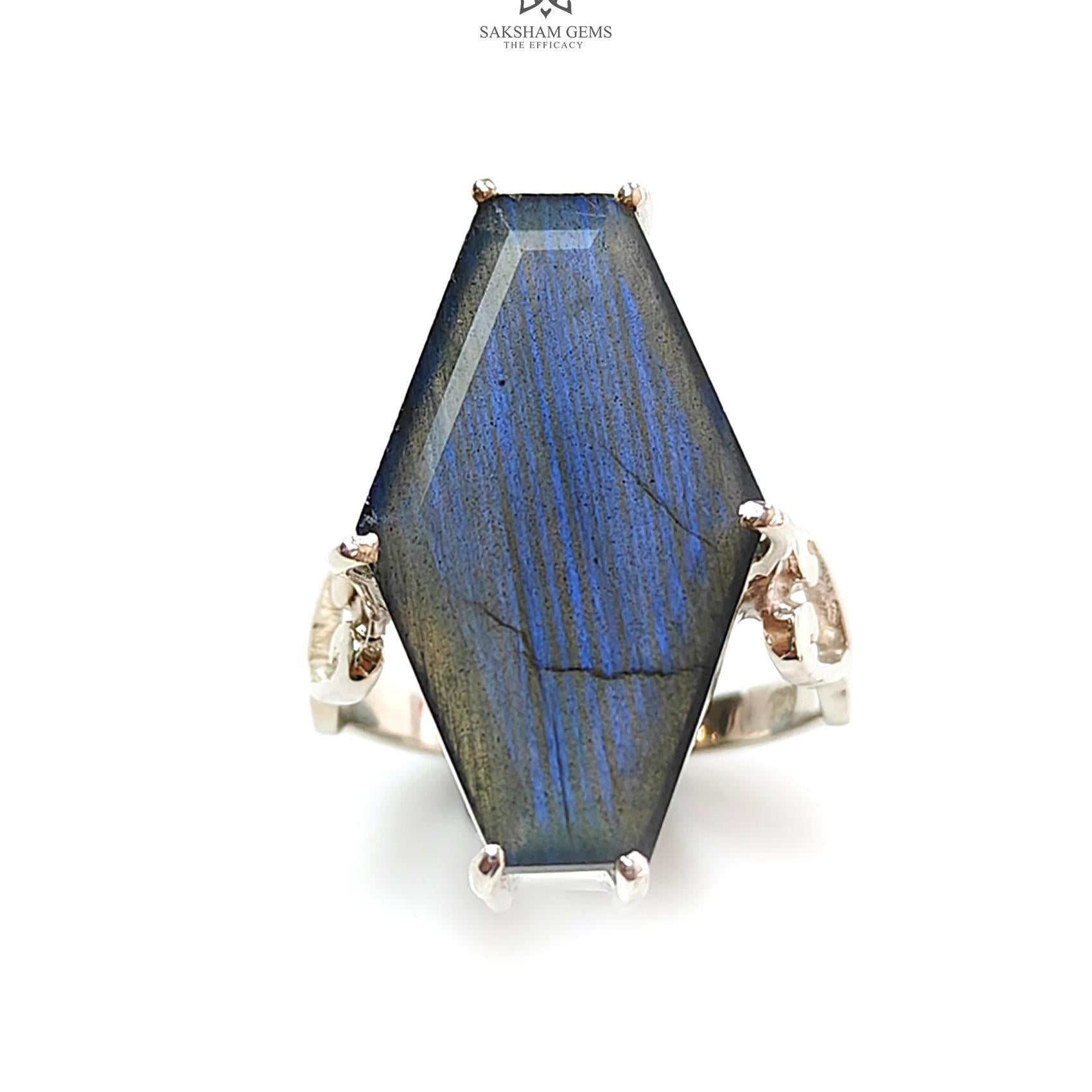 Blue Labradorite Silver Faceted Ring: 5.64gms Natural Untreated Labradorite Uneven Shape Fancy Cut 925 Sterling Silver Prong Set 7.5 US