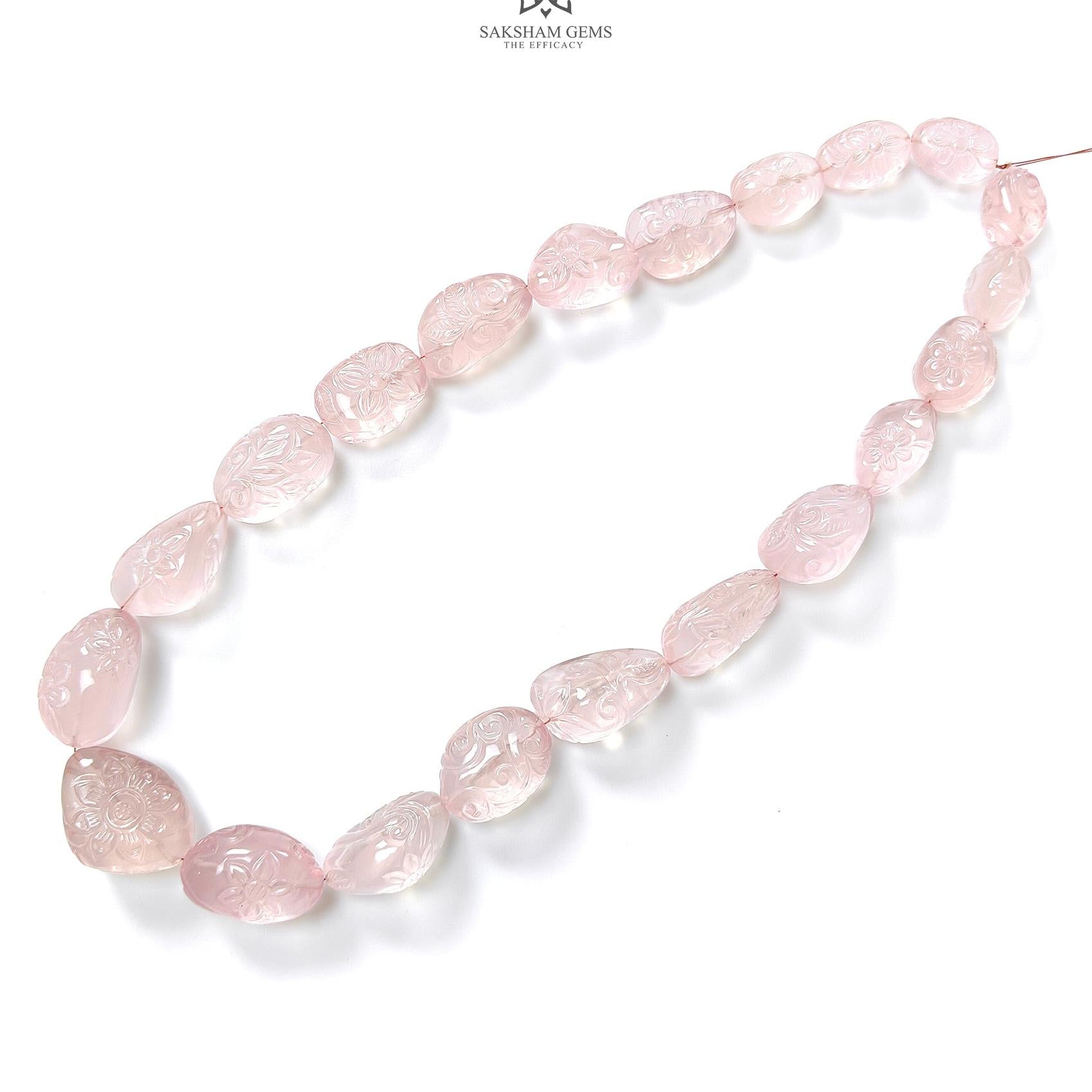 Pink Rose Quartz Loose Beads: 800.60cts Natural Untreated Quartz Fancy Shape Hand Carved Beads 17*13mm - 30.5*23mm 20"