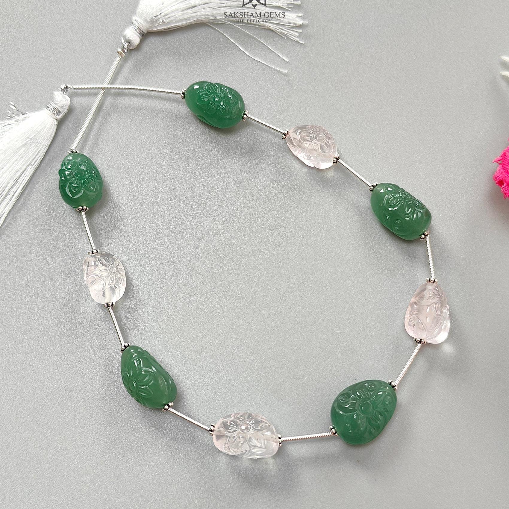Rose Green Quartz Loose Tumble Beads: 142.00cts Natural Green Quartzite Gemstone Hand Carved Uneven 925 Sterling Silver 16*11mm - 19*12mm