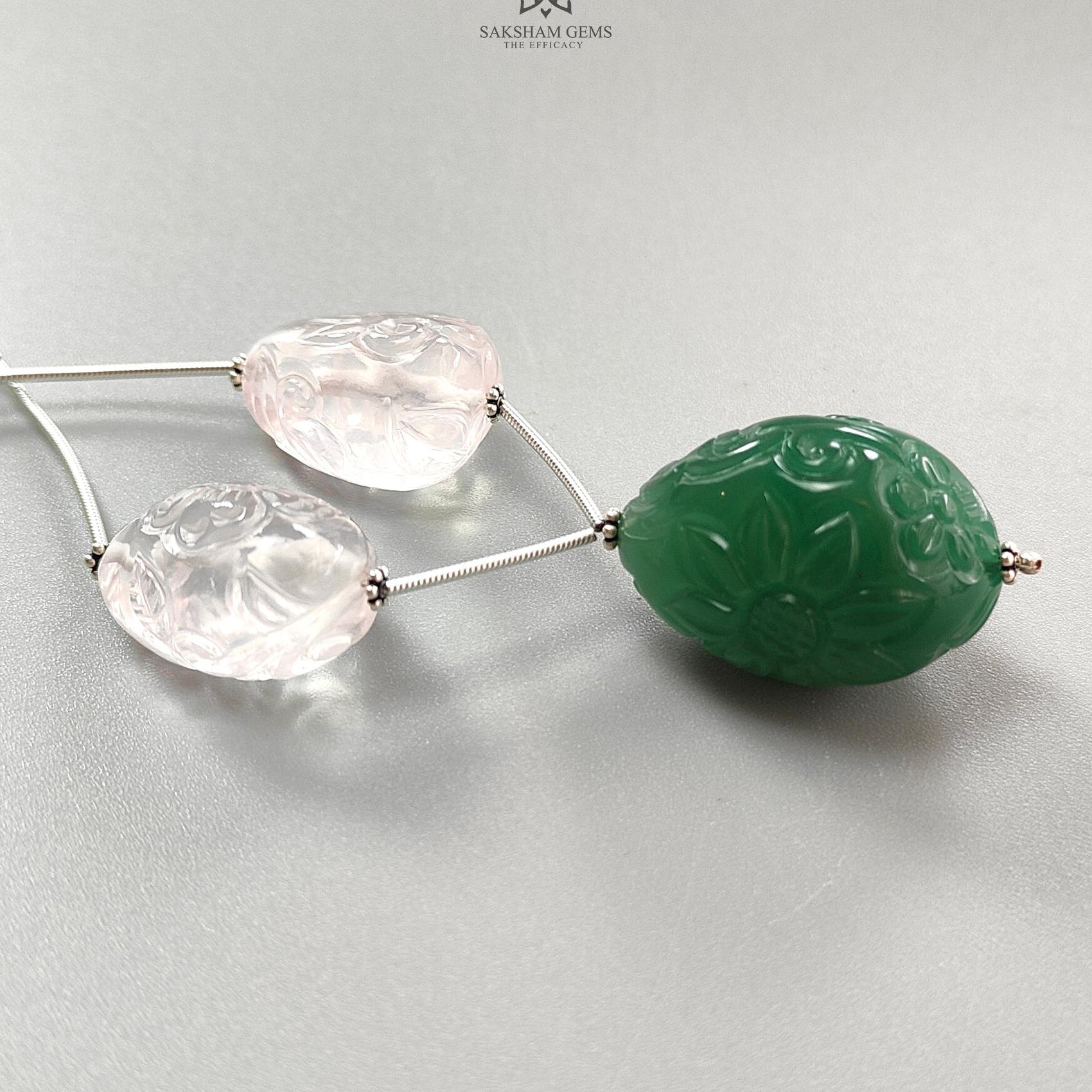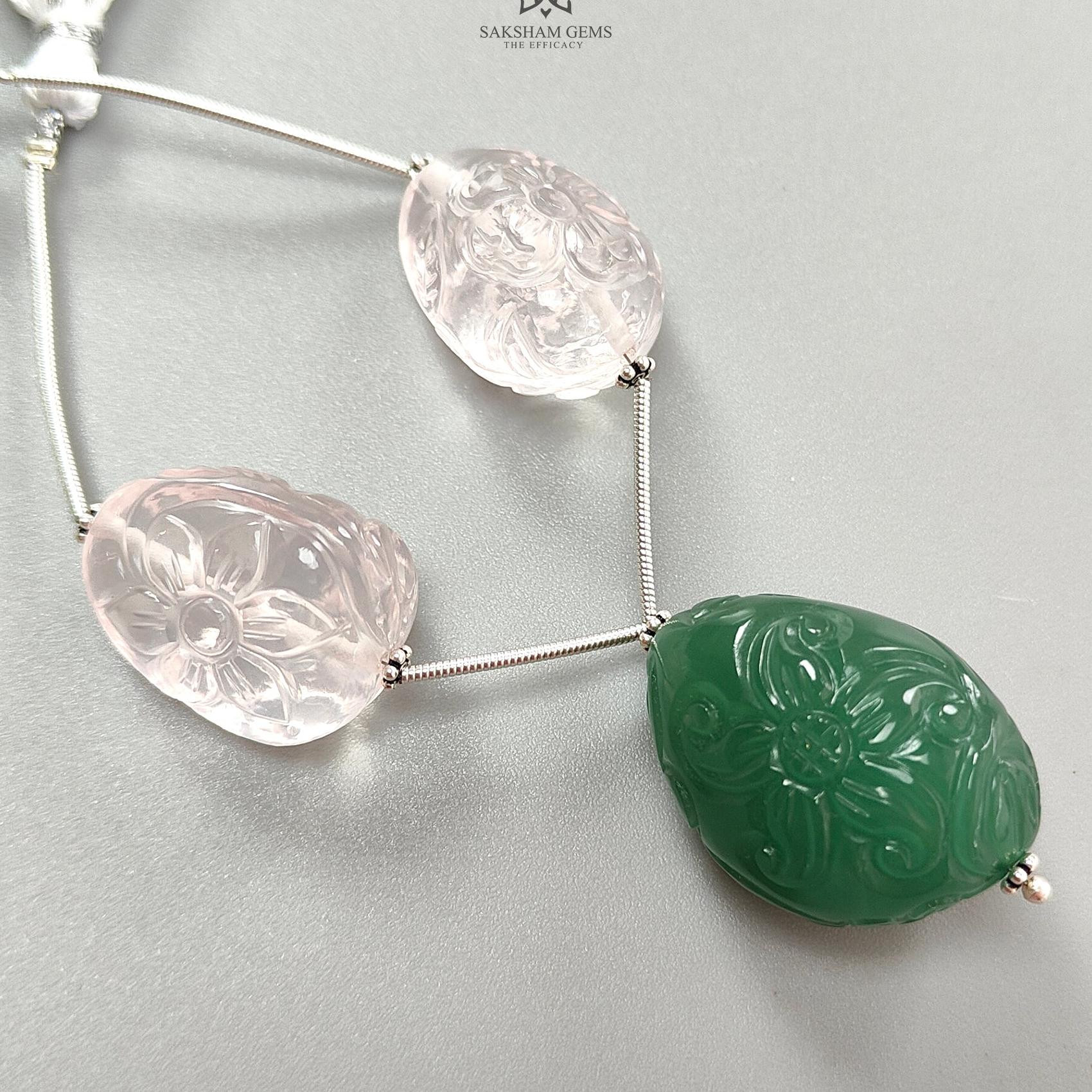 Rose Green Quartz Loose Tumble Beads: 152.50cts Natural Green Quartzite Gemstone Hand Carved Uneven 925 Sterling Silver 22*17mm - 29*21mm