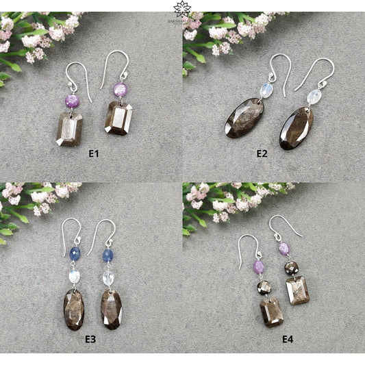 Sapphire & Moonstone Gemstone Earring : Natural Untreated Chocolate Sapphire 925 Sterling Silver Drop Dangle Hook Earring