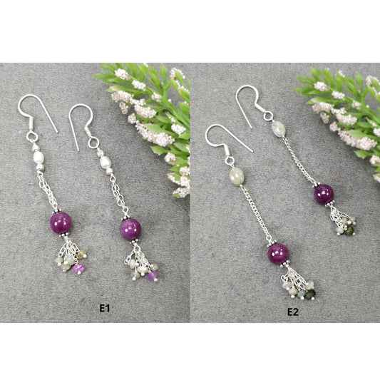 Beads Earring Ruby & Pearl Gemstone Silver Earring : 15.79gms Natural 925 Sterling Silver Drop Dangle Ear Wire Hook Beaded Earrings 2.5"