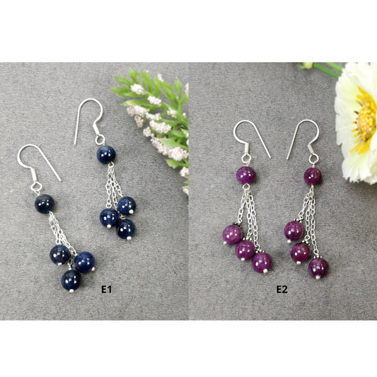 Ruby & Blue SAPPHIRE Gemstone 925 Sterling Silver Beaded Earrings : Natural Untreated Long Drop Dangle Ear Wire Hook Earrings