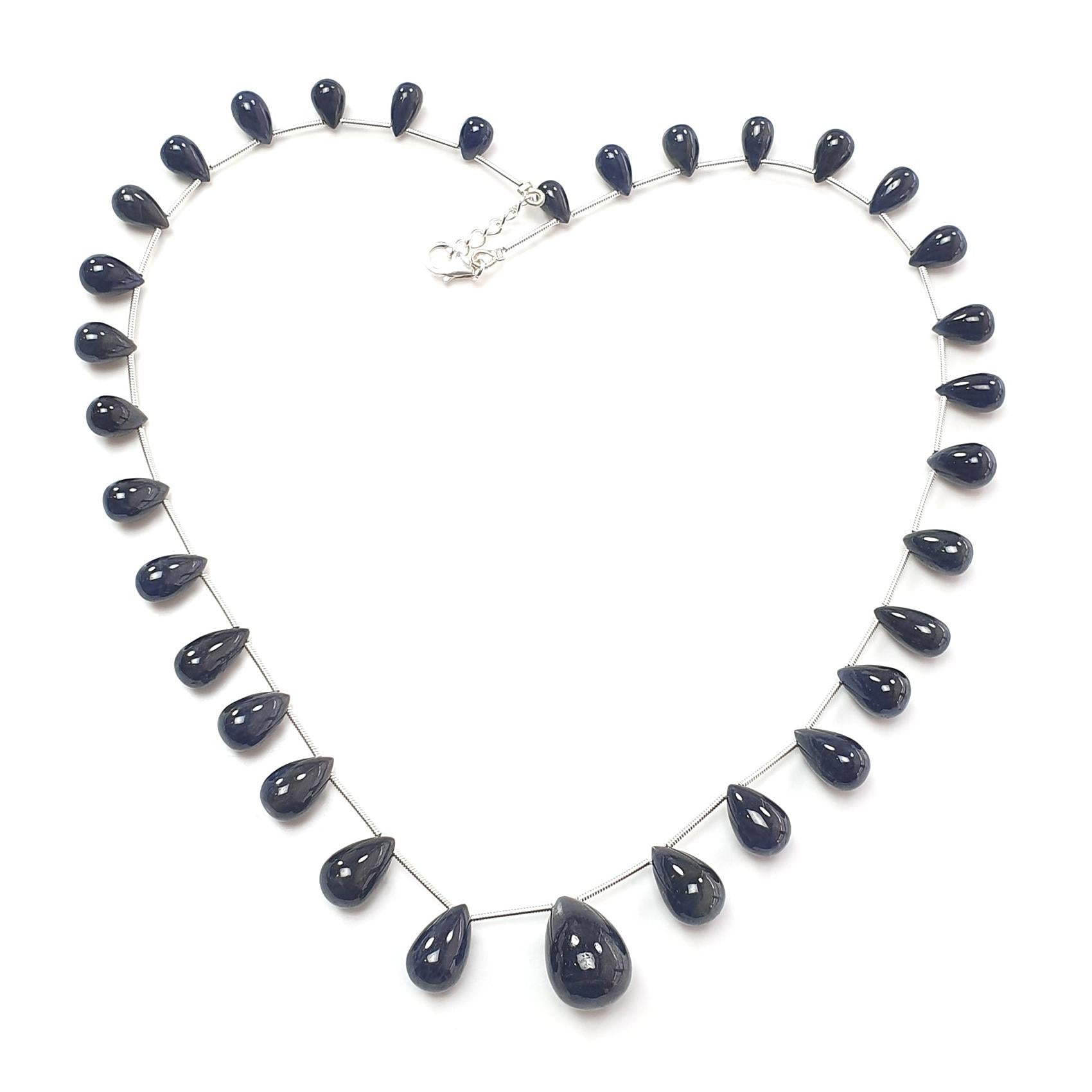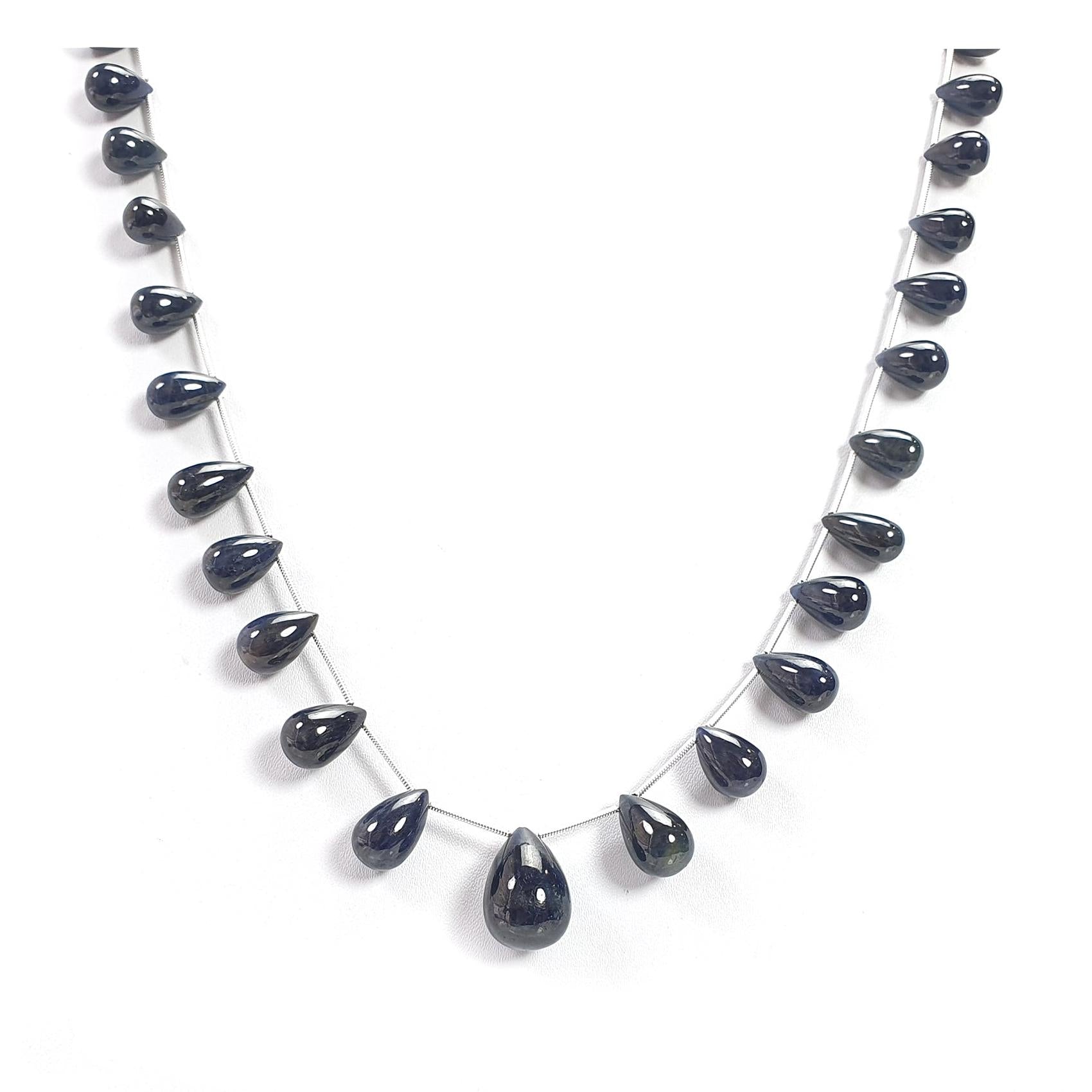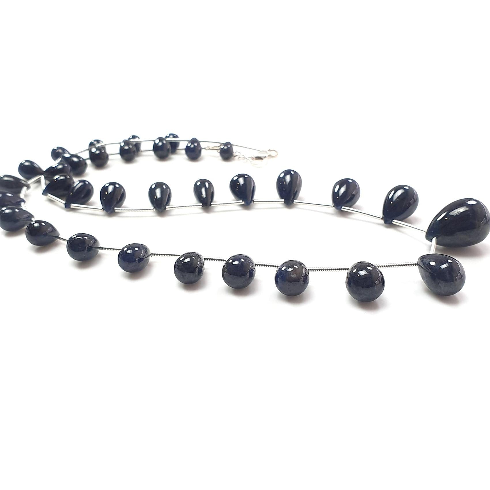 Blue Sapphire Gemstone Beads Necklace: 220.00ct Natural Untreated Sapphire Plain Teardrops 925 Sterling Silver Necklace 8mm - 18mm 20"