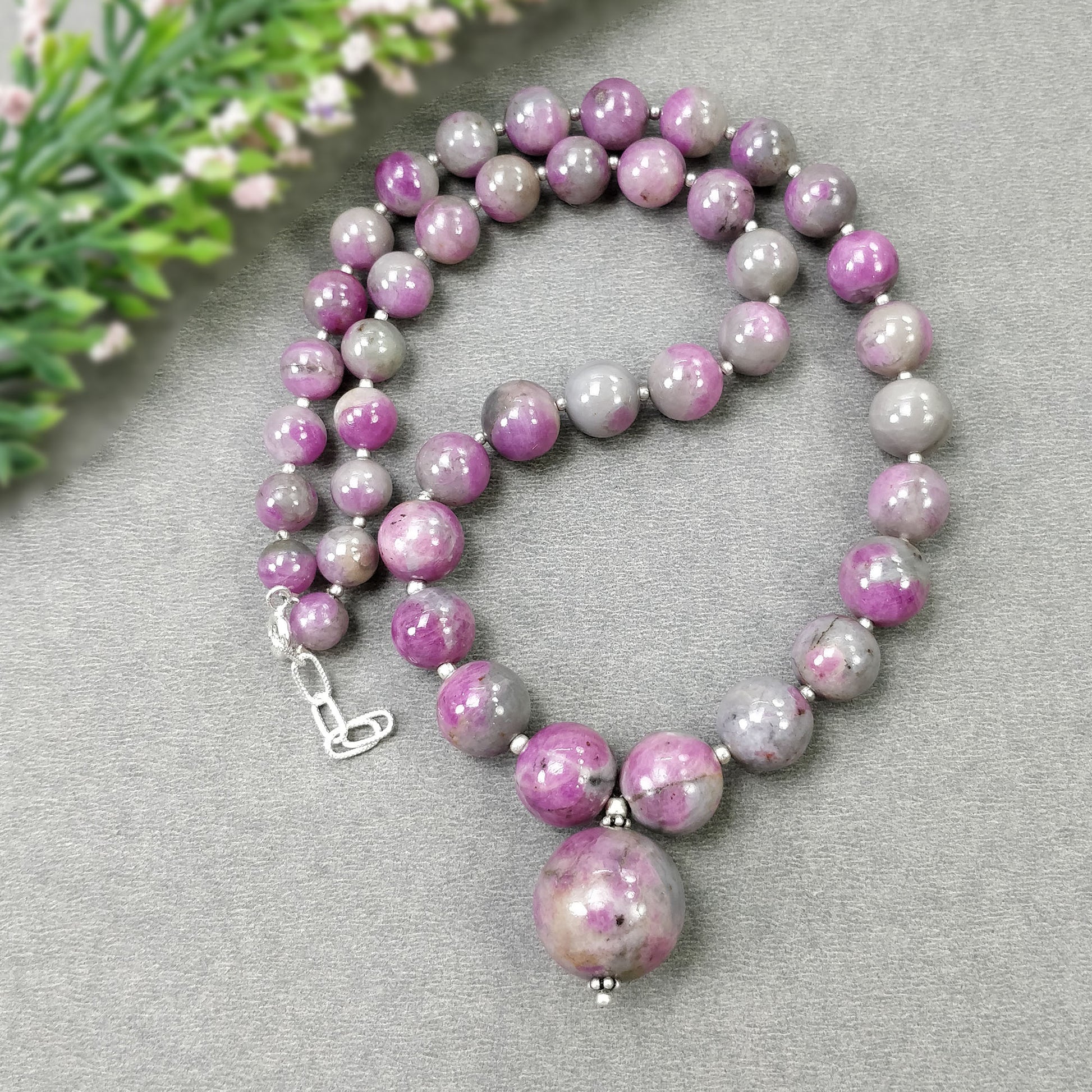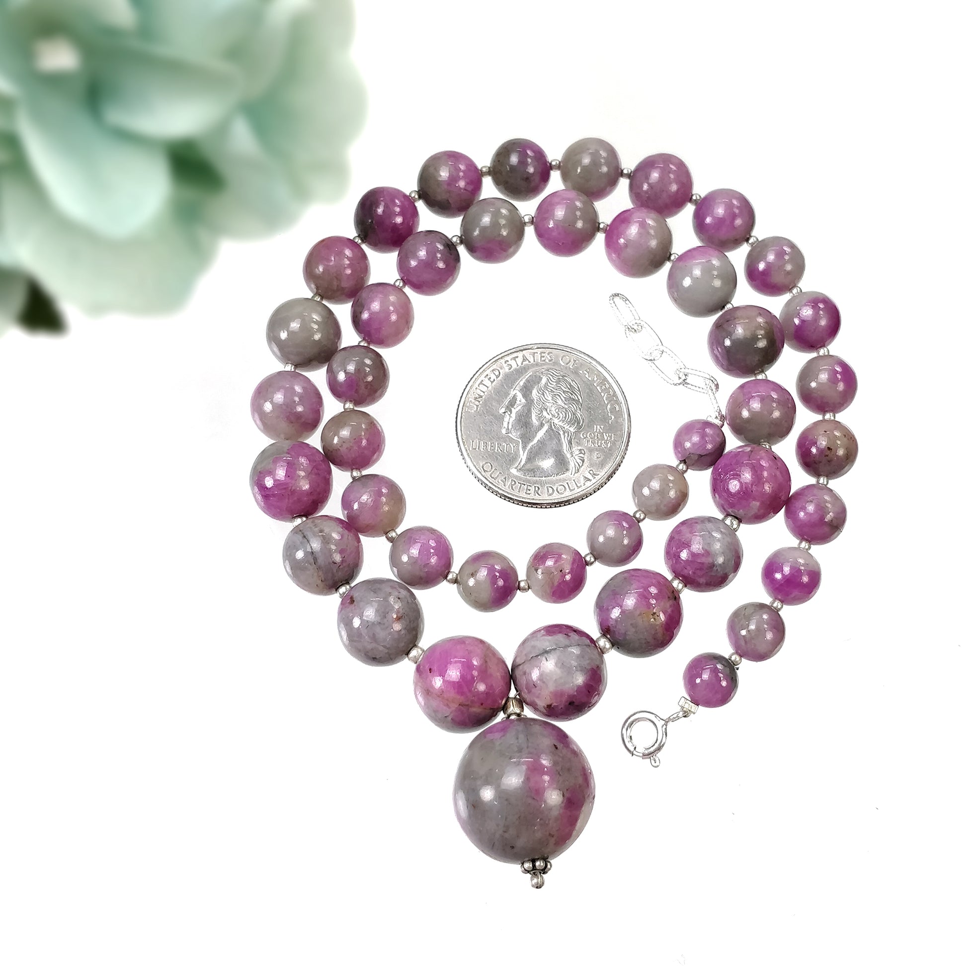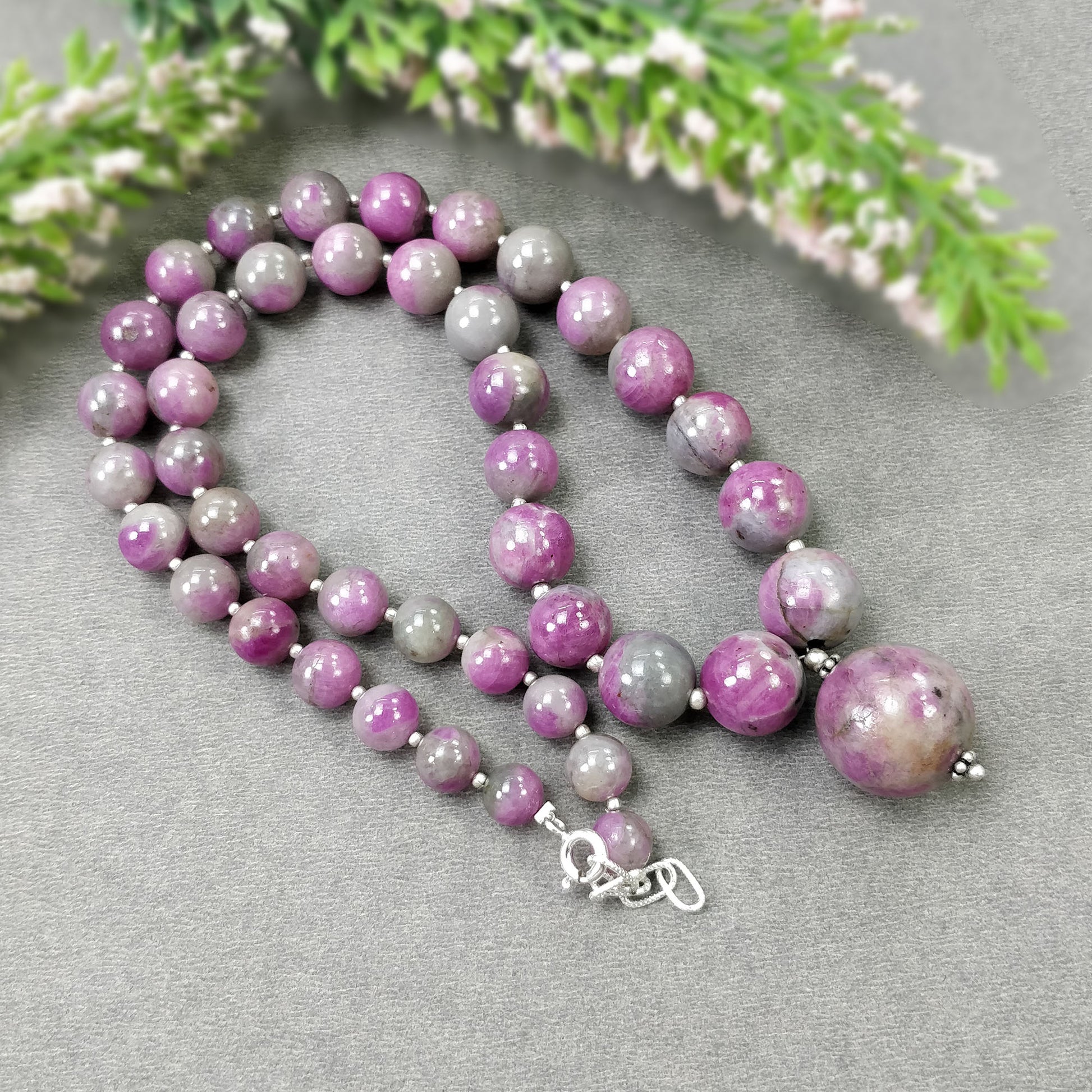 Global RUBY Gemstone NECKLACE: 334.15cts Natural Untreated Bi-Color Zoisite Ruby Balls With 925 Sterling Silver 7mm - 17mm 18"
