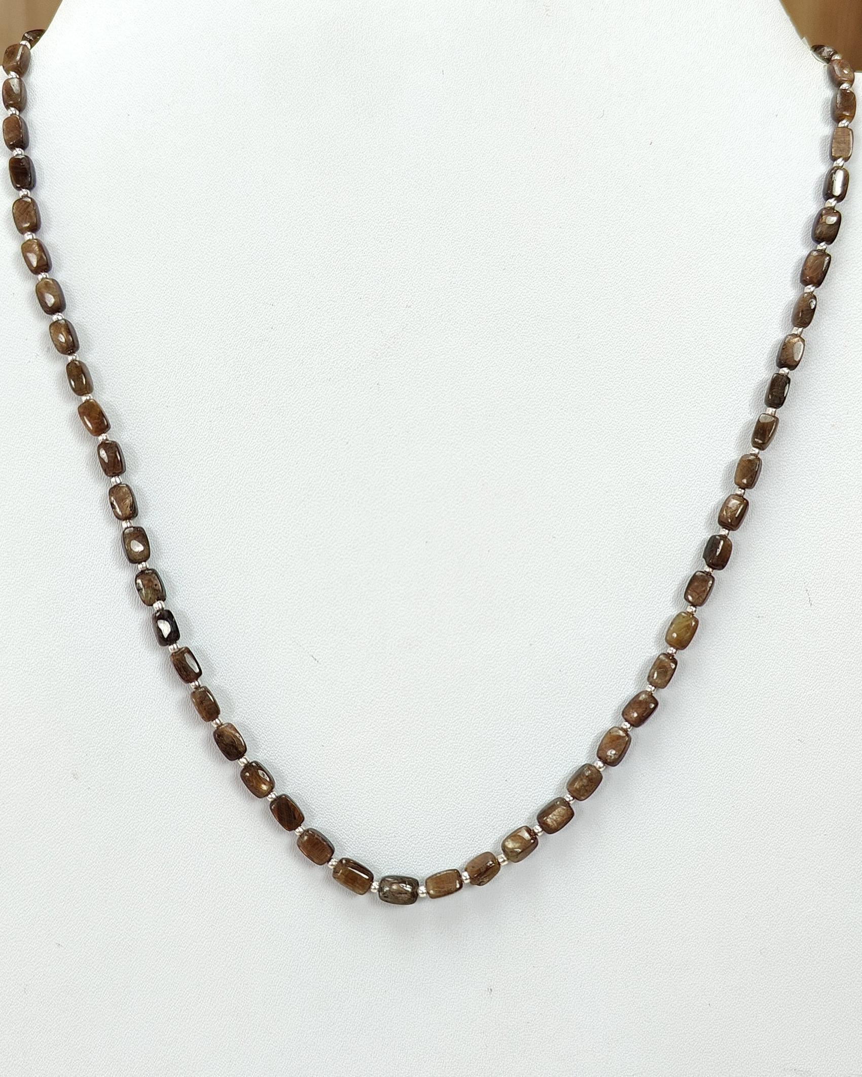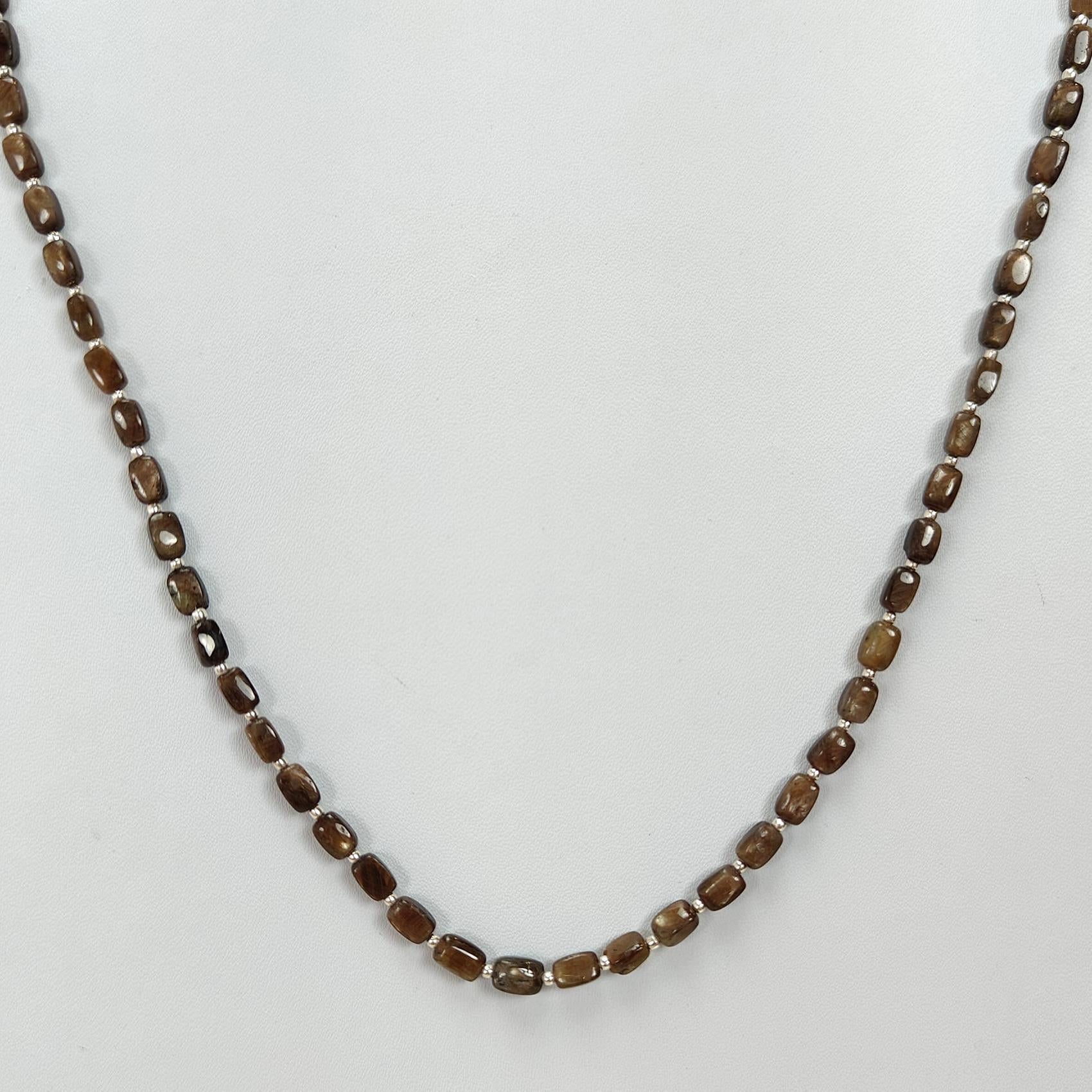 Golden Brown Chocolate Sapphire Gemstone Beads Necklace : 14.26gms 925 Sterling Silver Natural Plain Cushion Sapphire 5*3mm - 6*4mm 19"