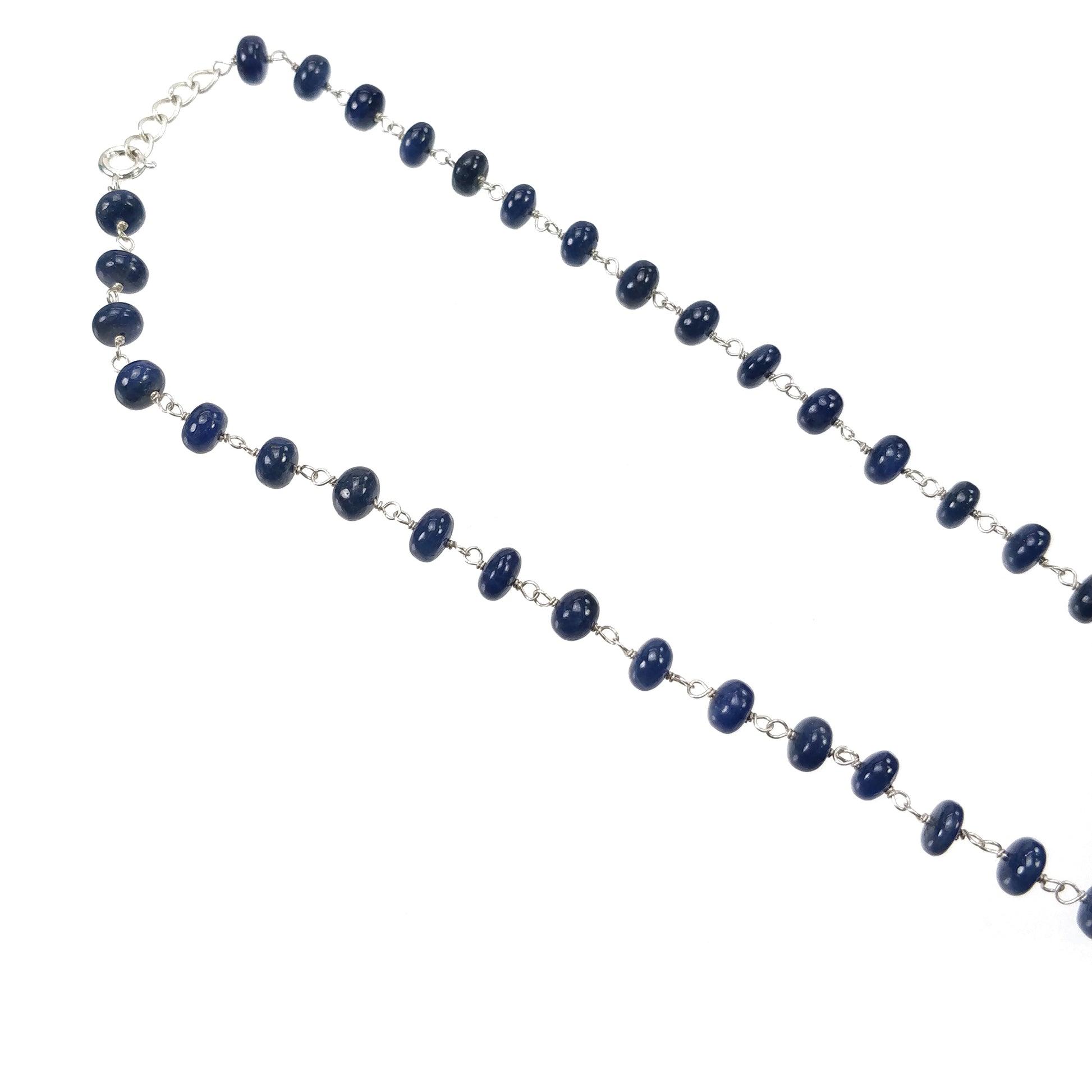 Blue SAPPHIRE RUBY & Cat's Eye Gemstone NECKLACE : 109.45cts Natural Round Plain Beads Sapphire With 925 Sterling Silver 6mm - 14*9mm 22"