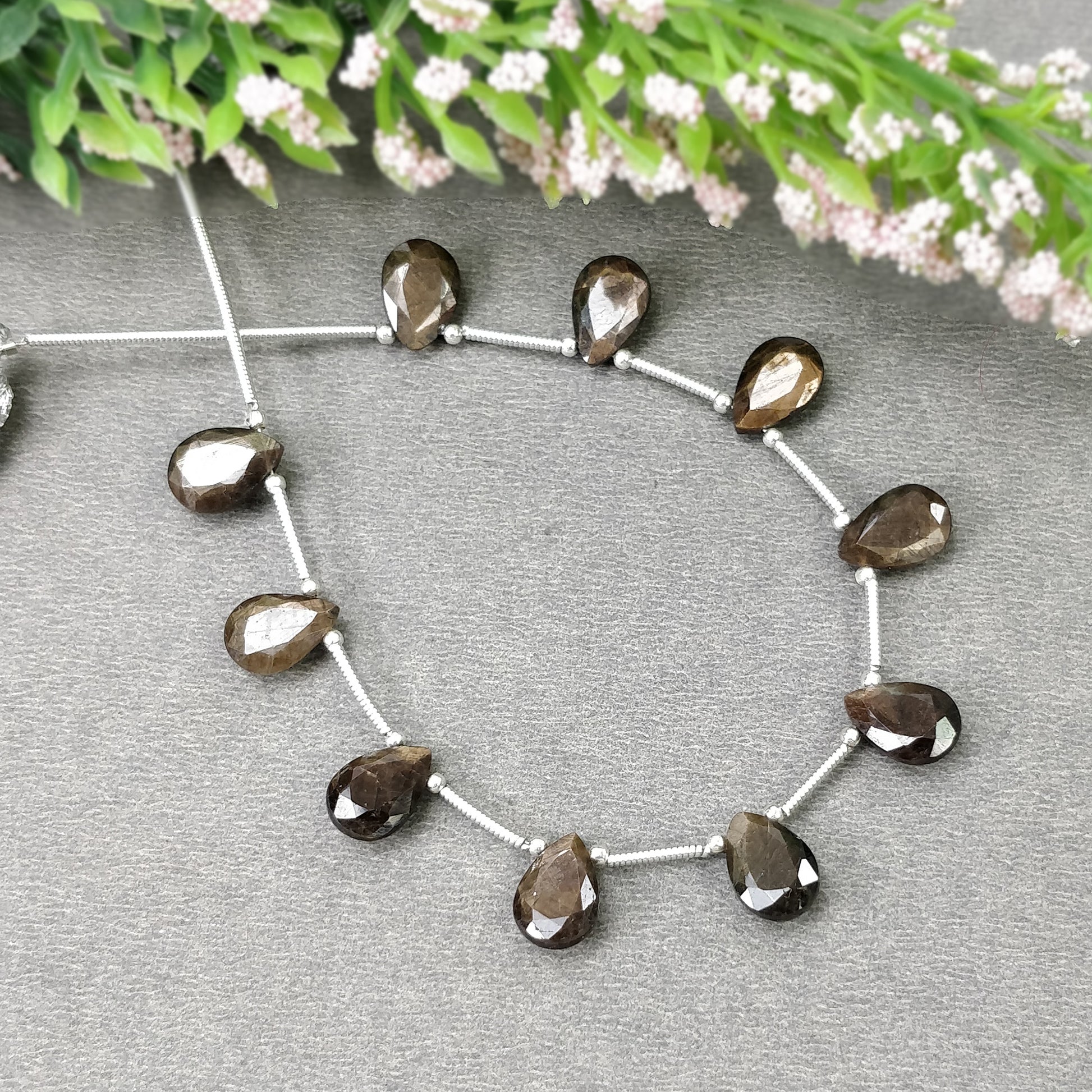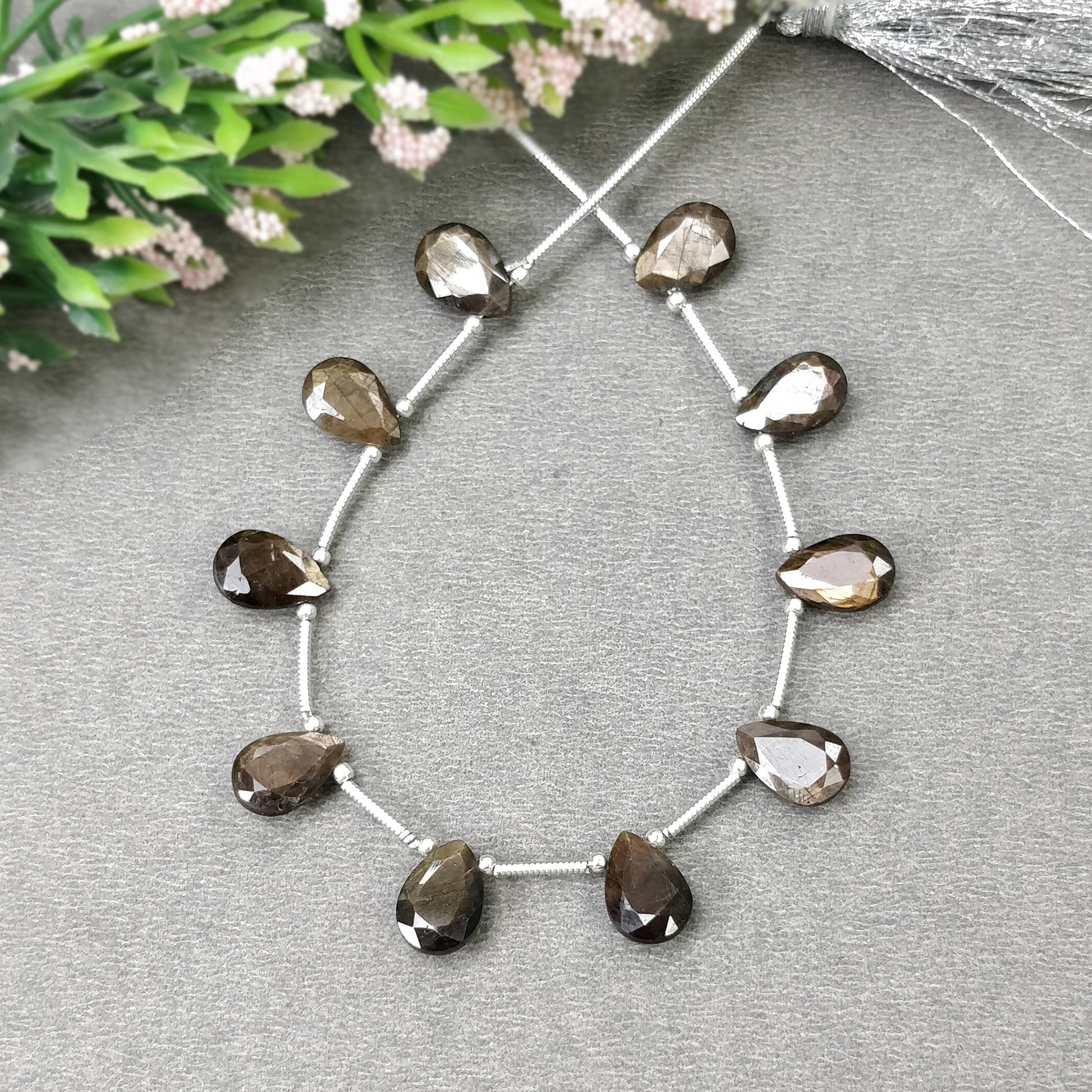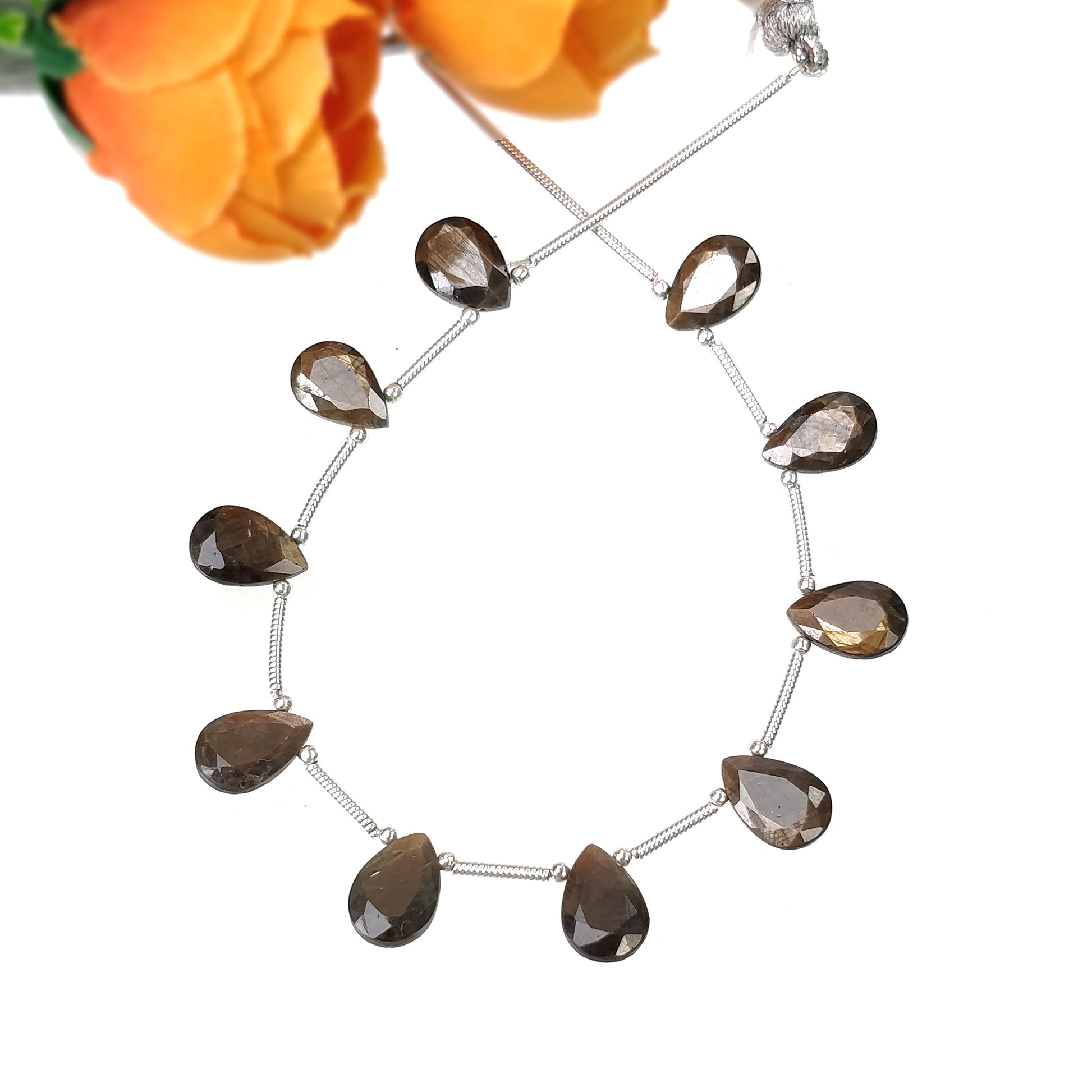 Golden Brown CHOCOLATE Sapphire Gemstone Normal Cut Loose Beads : 29.10cts Natural Unheated Pear Shape Faceted Beads 10*7mm - 10.5*7mm