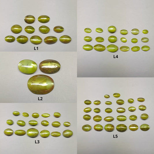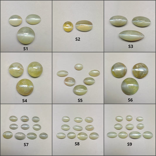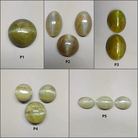 - Cat's Eye gemstones are typically found in shades of yellow, green, brown, and honey-like hues. The color can vary depending on the type of mineral and the presence of various impurities.