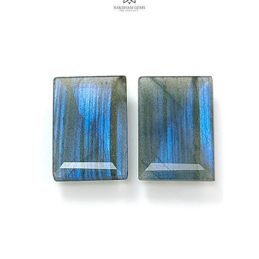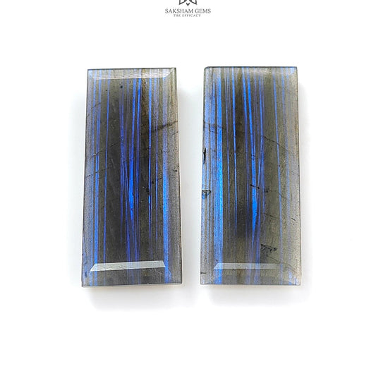 24.80cts Labradorite Blue faceted Cut Natural Untreated Baguette Shape Pair for Jewelry