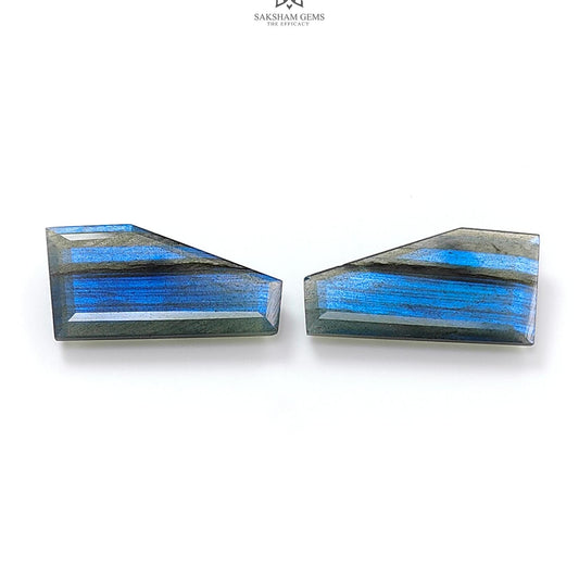 40.50cts Blue Labradorite Faceted Cut Natural Untreated Pear Shape Pair 33*19mm