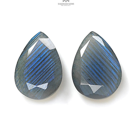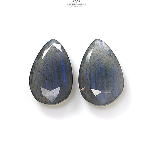 16.80cts Blue Labradorite Faceted Cut Natural Untreated Pear Shape 2pcs 22.5*13mm