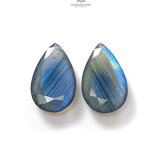 13.80cts Labradorite Blue faceted Cut Natural Untreated Pear Shape Pair for Jewelry
