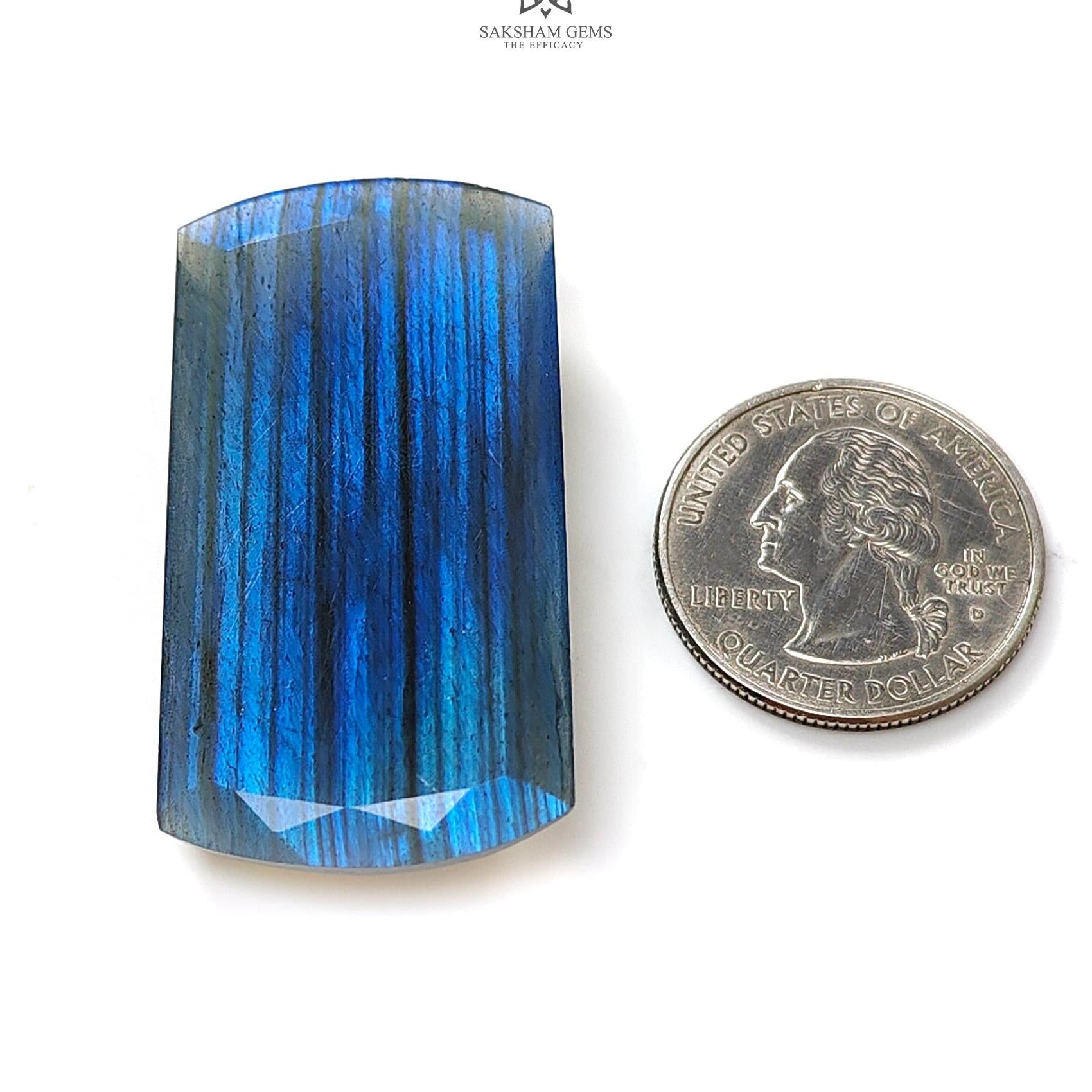 Labradorite Cabochon Fancy Cut: 78.20cts Natural Untreated Unheated Blue Labradorite Baguette Shape 1pc For Jewelry 46*24mm