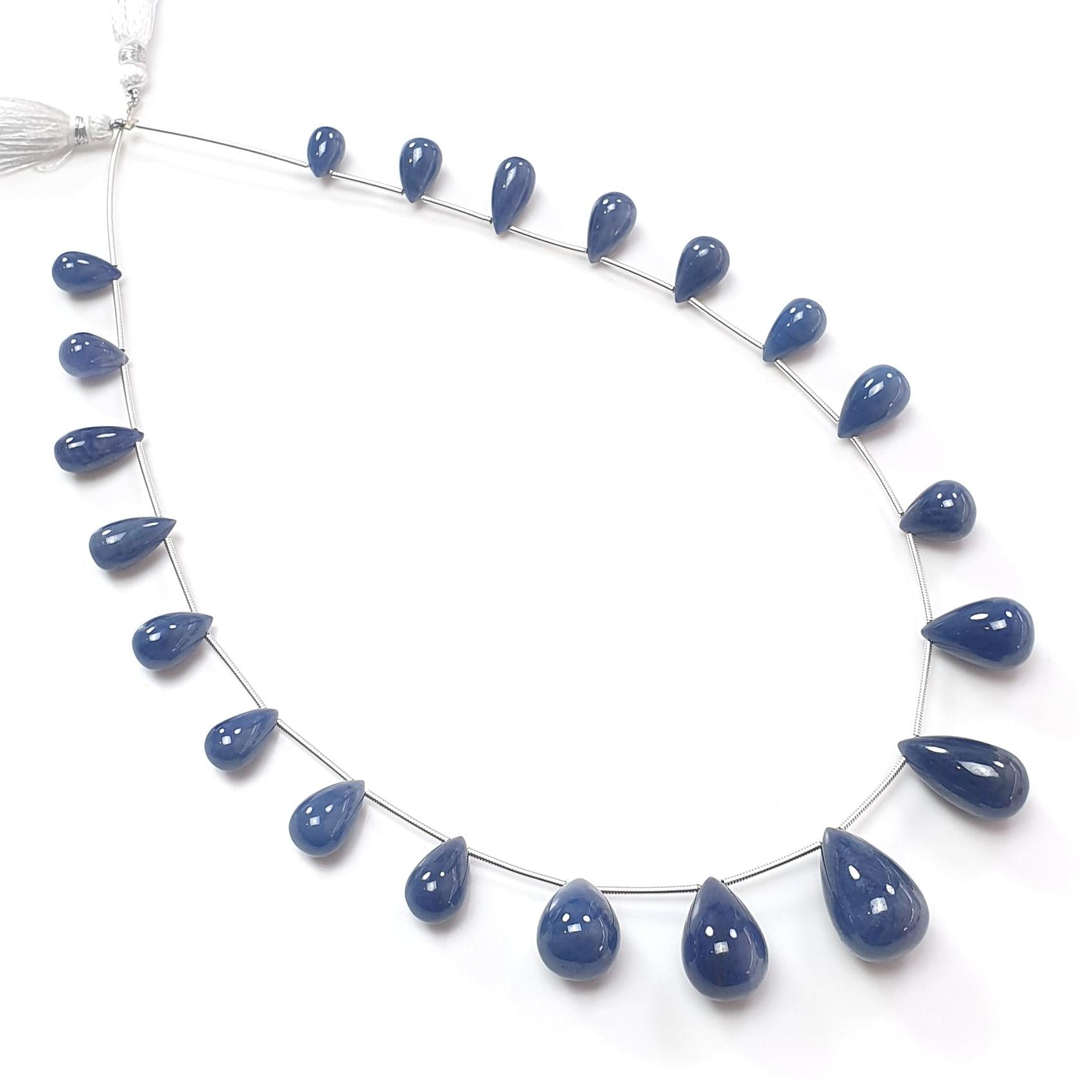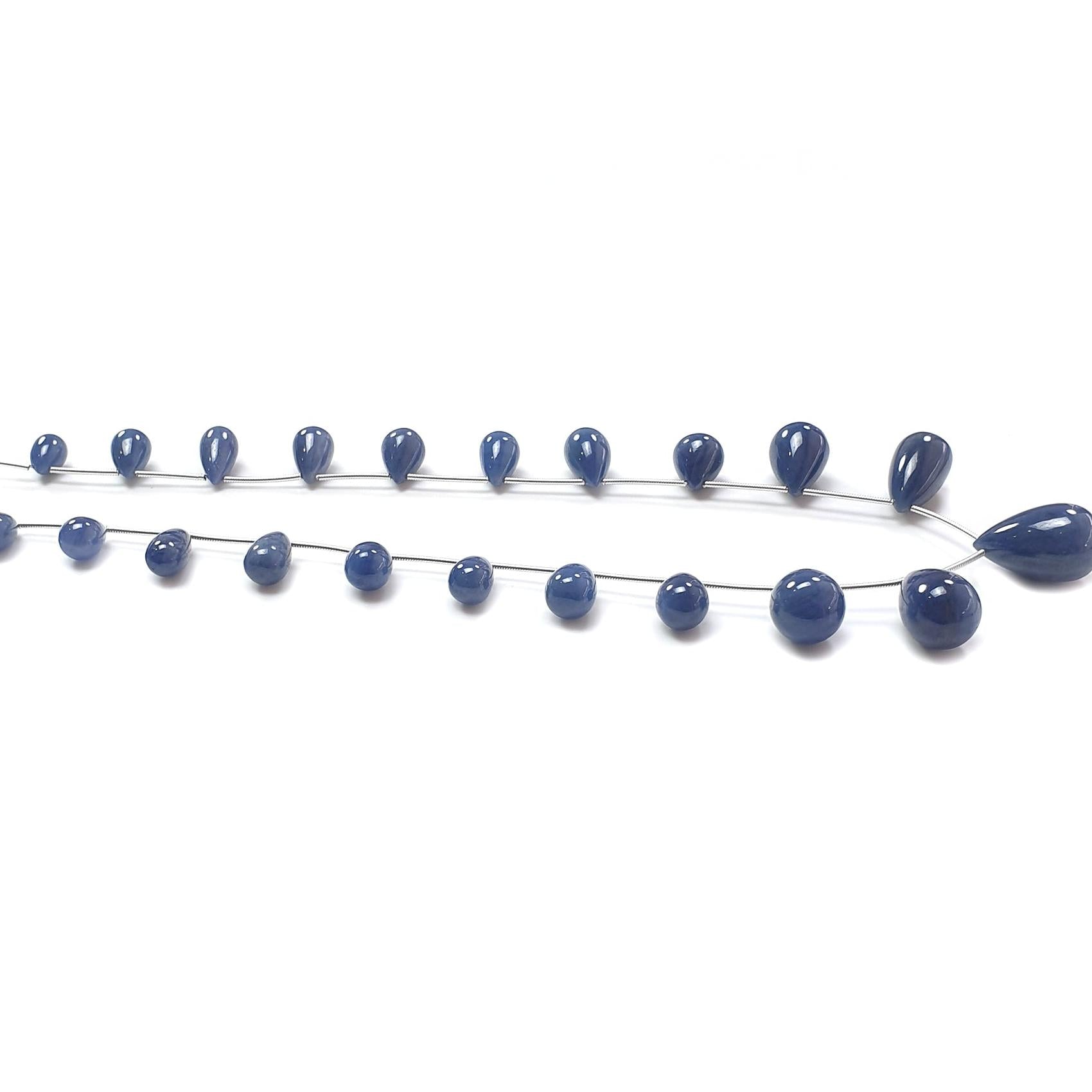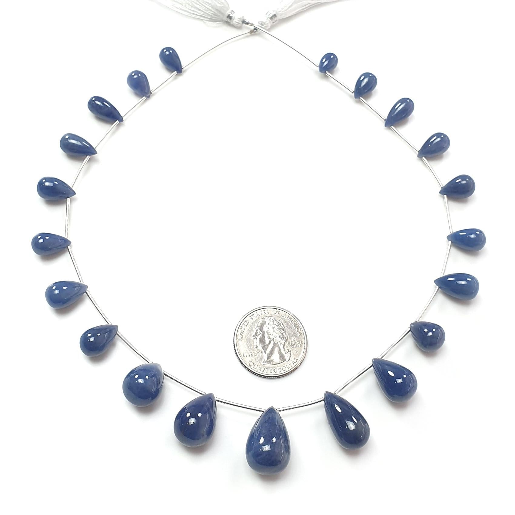 Blue Sapphire Smooth Loose Beads: 256.00cts Natural Untreated Sapphire Plain Teardrops 925 Silver Beads 10mm - 21mm September Birthstone