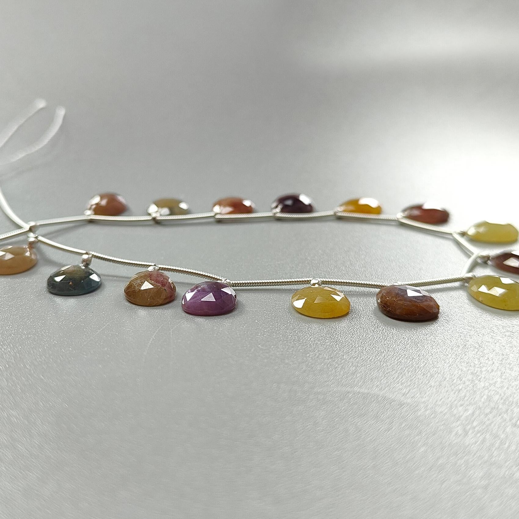 Multi Sapphire Faceted Loose Beads: 78.00cts Natural Untreated Sapphire Rose Cut Egg Shape 925 Silver Loose Beads 13*11mm - 14*10mm