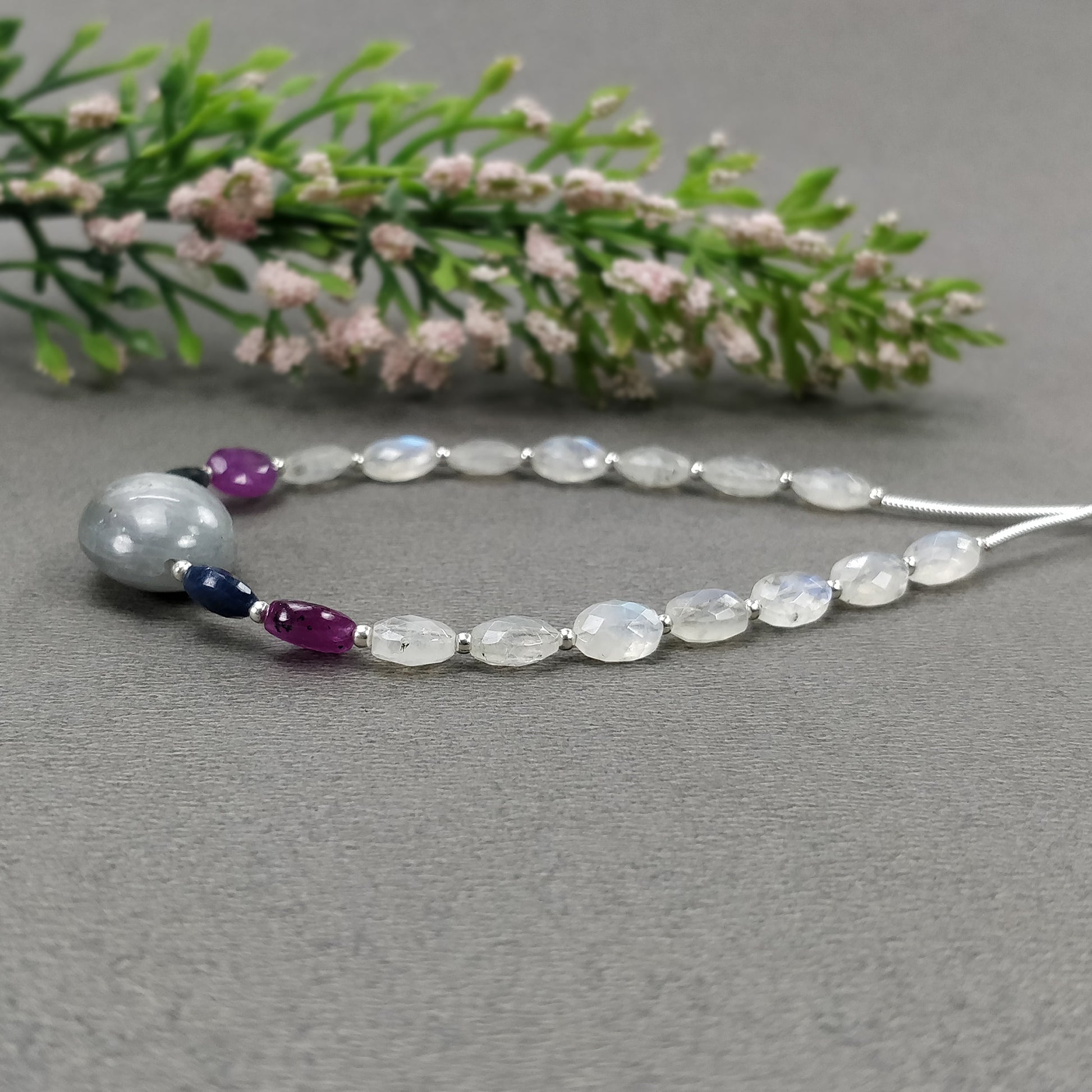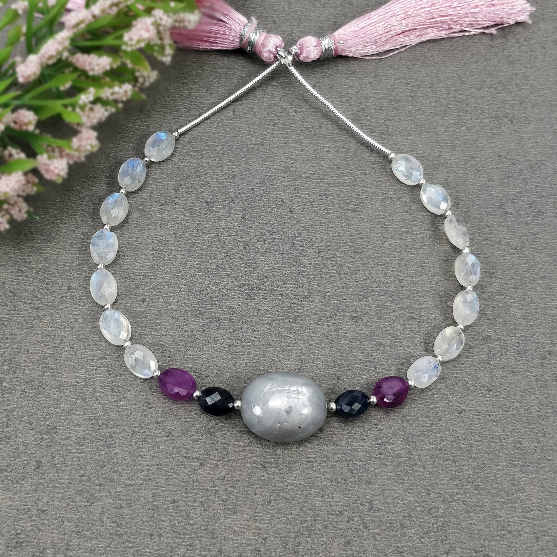 Sapphire, Rainbow Moonstone Gemstone Loose Beads : 37.50cts Natural Untreated Oval Faceted Beads 7*5mm- 16*13mm 6.50"