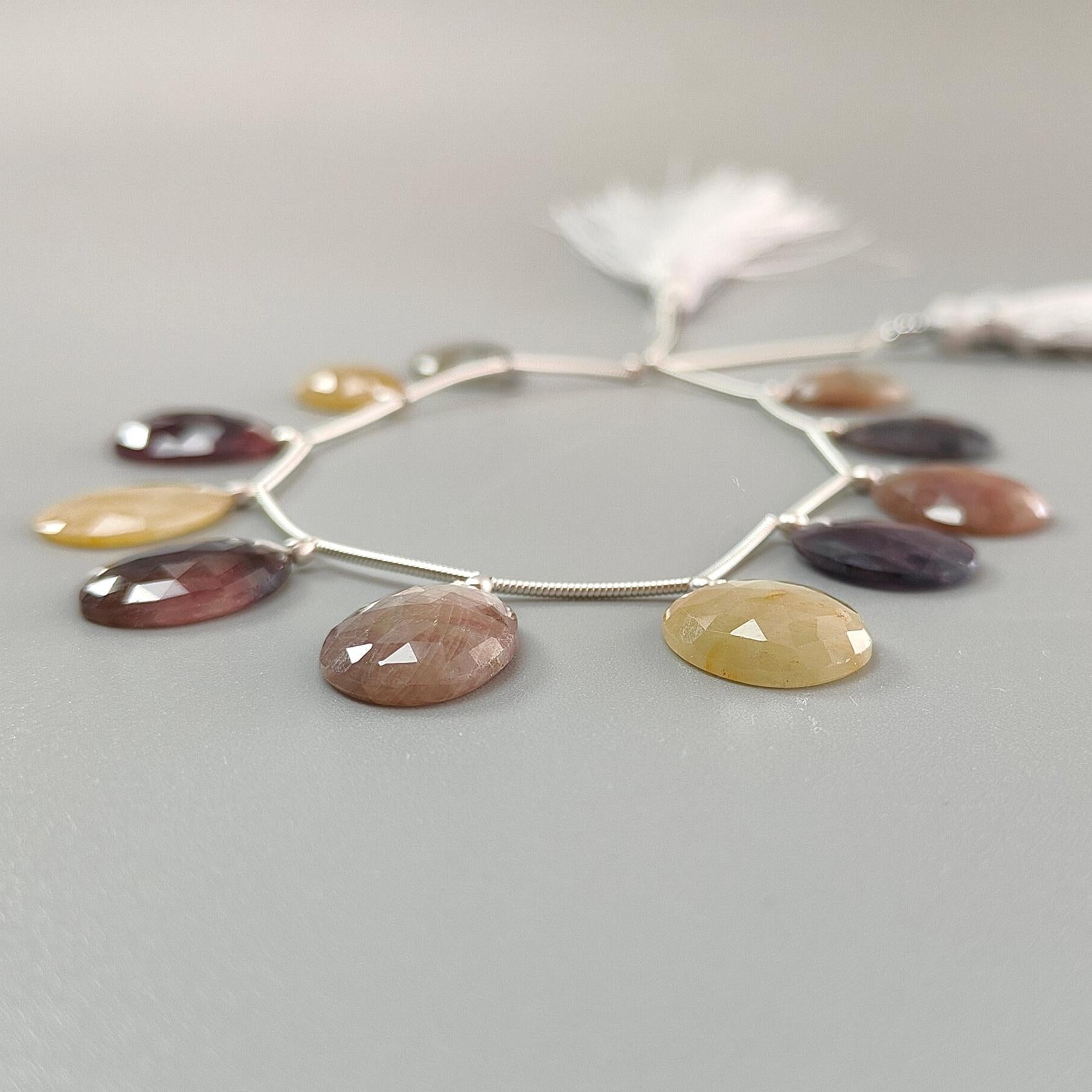 Multi Sapphire Faceted Loose Beads: 85.00cts Natural Untreated Sapphire Rose Cut Egg Shape 925 Silver Loose Beads 15*12mm - 18*13mm