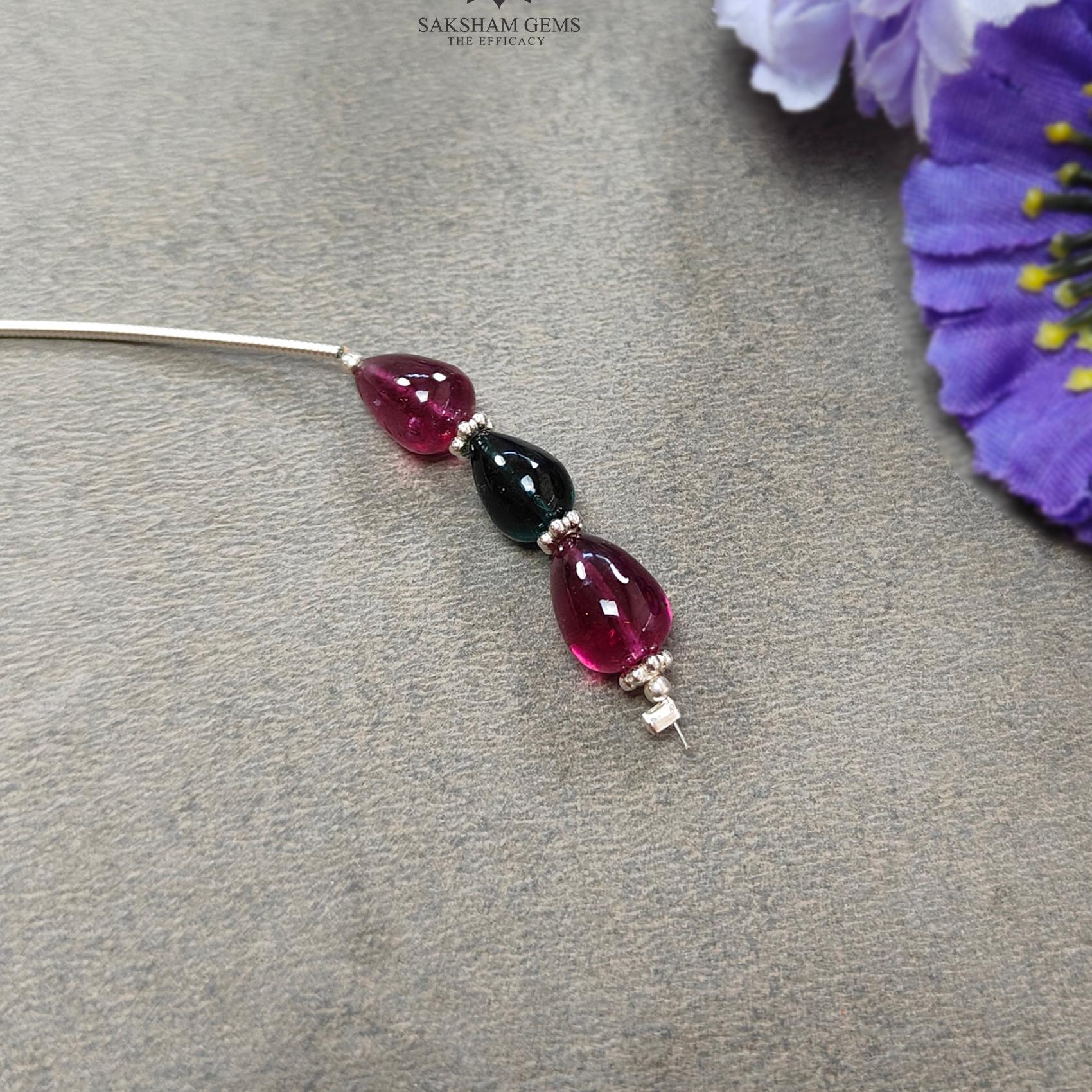 Watermelon Tourmaline Gemstone Loose Beads : 9.00cts Natural Multi Color Tourmaline Plain Teardrops Nuggets 8mm - 9.5mm
