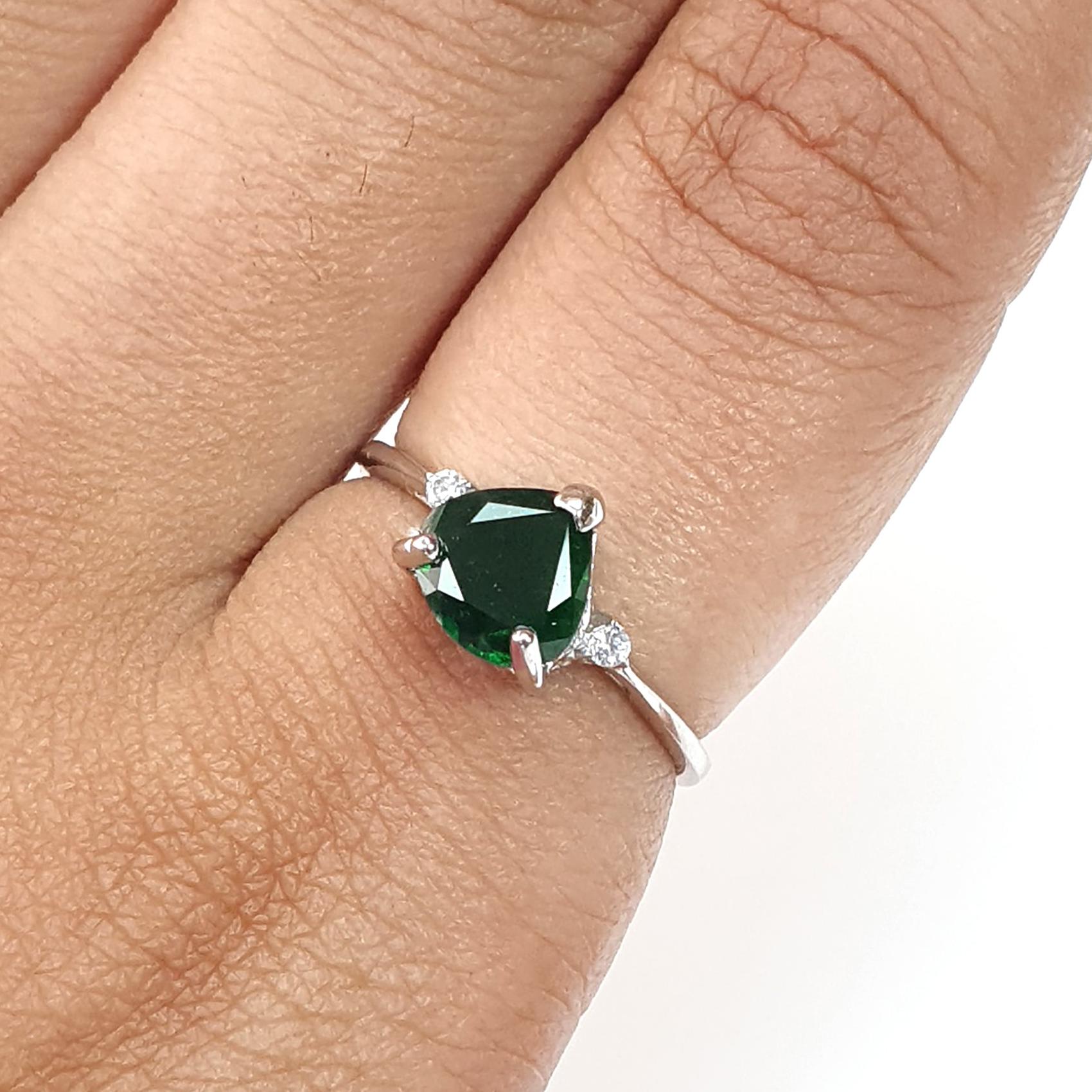 Emerald Faceted Silver Ring: 1.67gms Natural Untreated Emerald Heart Faceted Cut 925 Sterling Silver Prong Set Ring 5.5 US