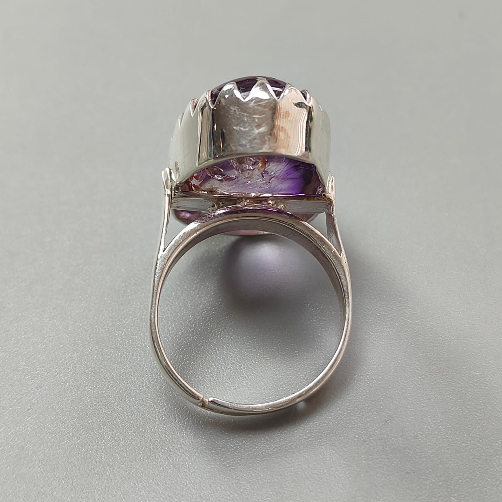 Amethyst Plain Silver Ring: 10.86gms Natural Untreated Super Seven Amethyst Fancy Shape Plain 925 Sterling Silver Bezel Set Adjustable Ring