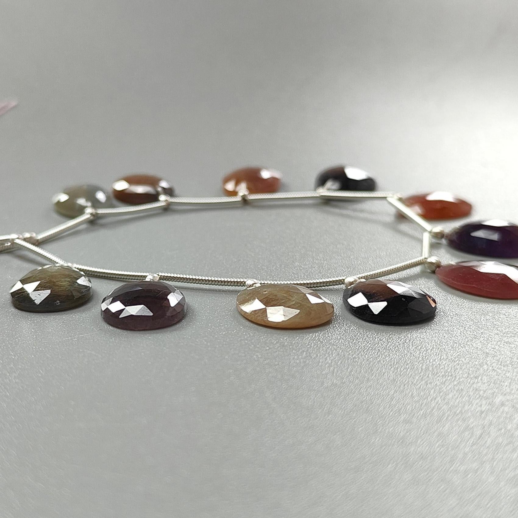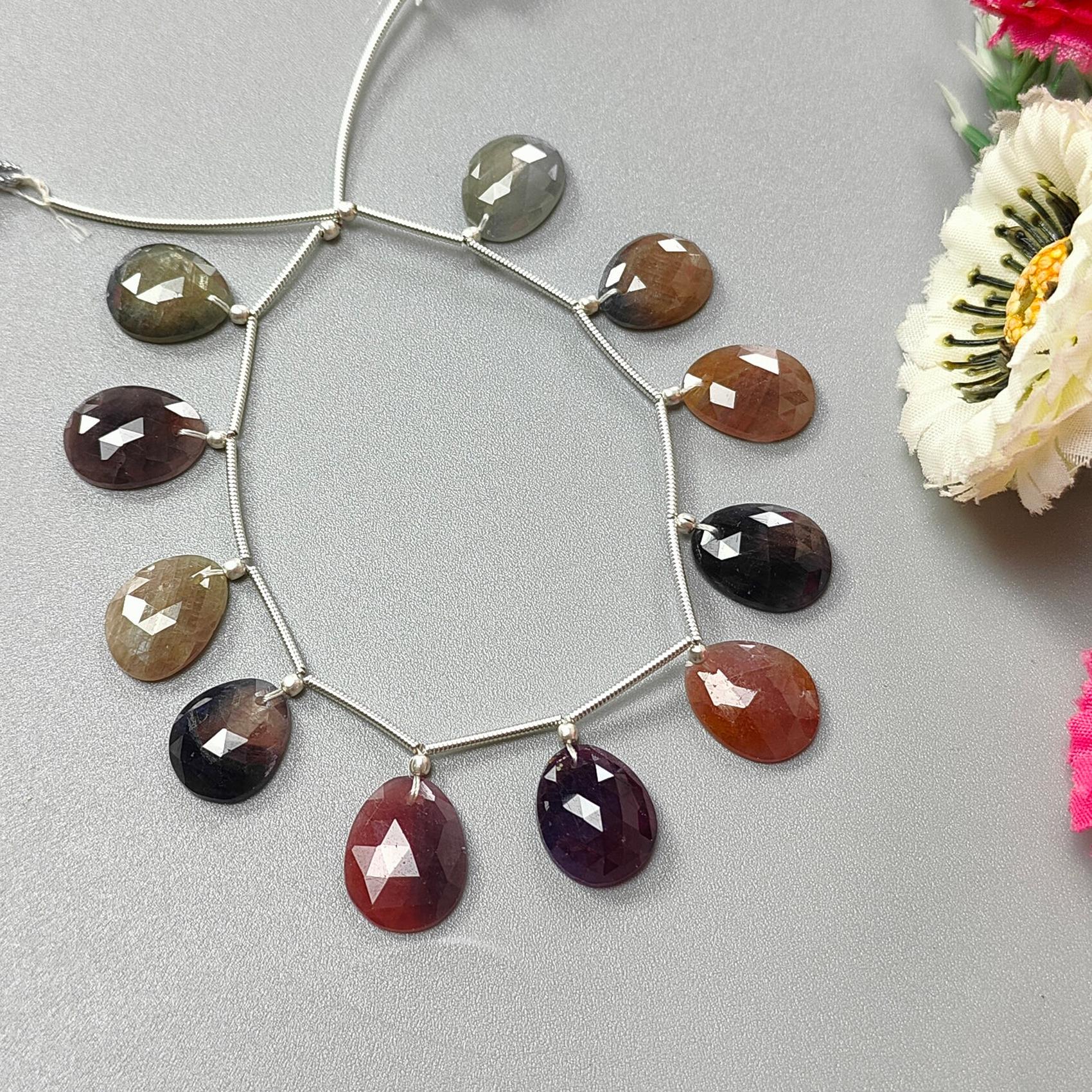 Multi Sapphire Faceted Loose Beads: 72.00cts Natural Untreated Sapphire Rose Cut Egg Shape 925 Silver Loose Beads 14*11mm - 15*12mm