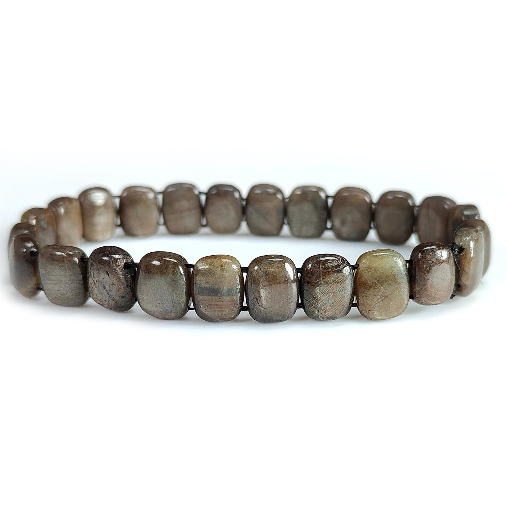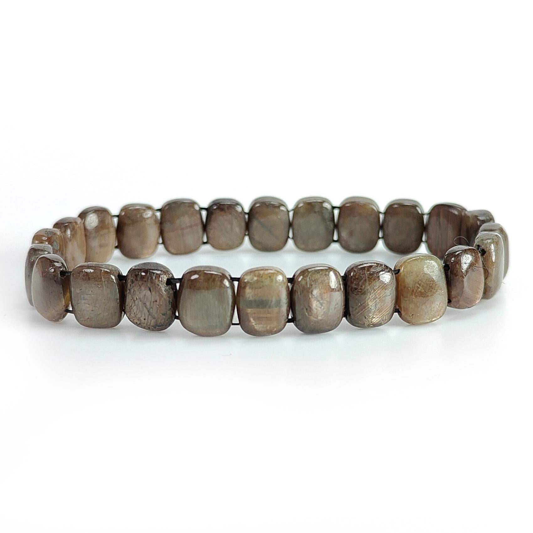 Golden Brown Chocolate Sapphire Beads Bracelet: 106.95cts Natural Untreated Sapphire Cushion Shape Plain Stretchable Bracelet 10*8mm 7"