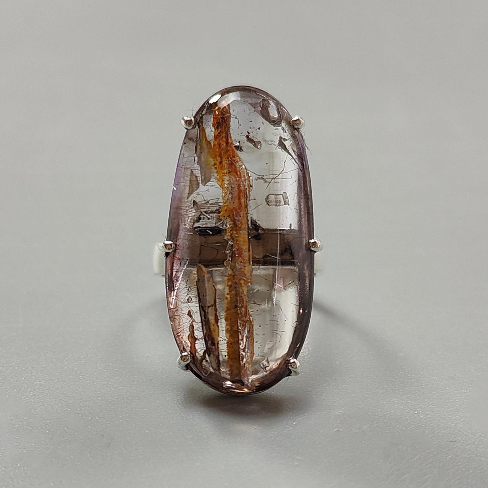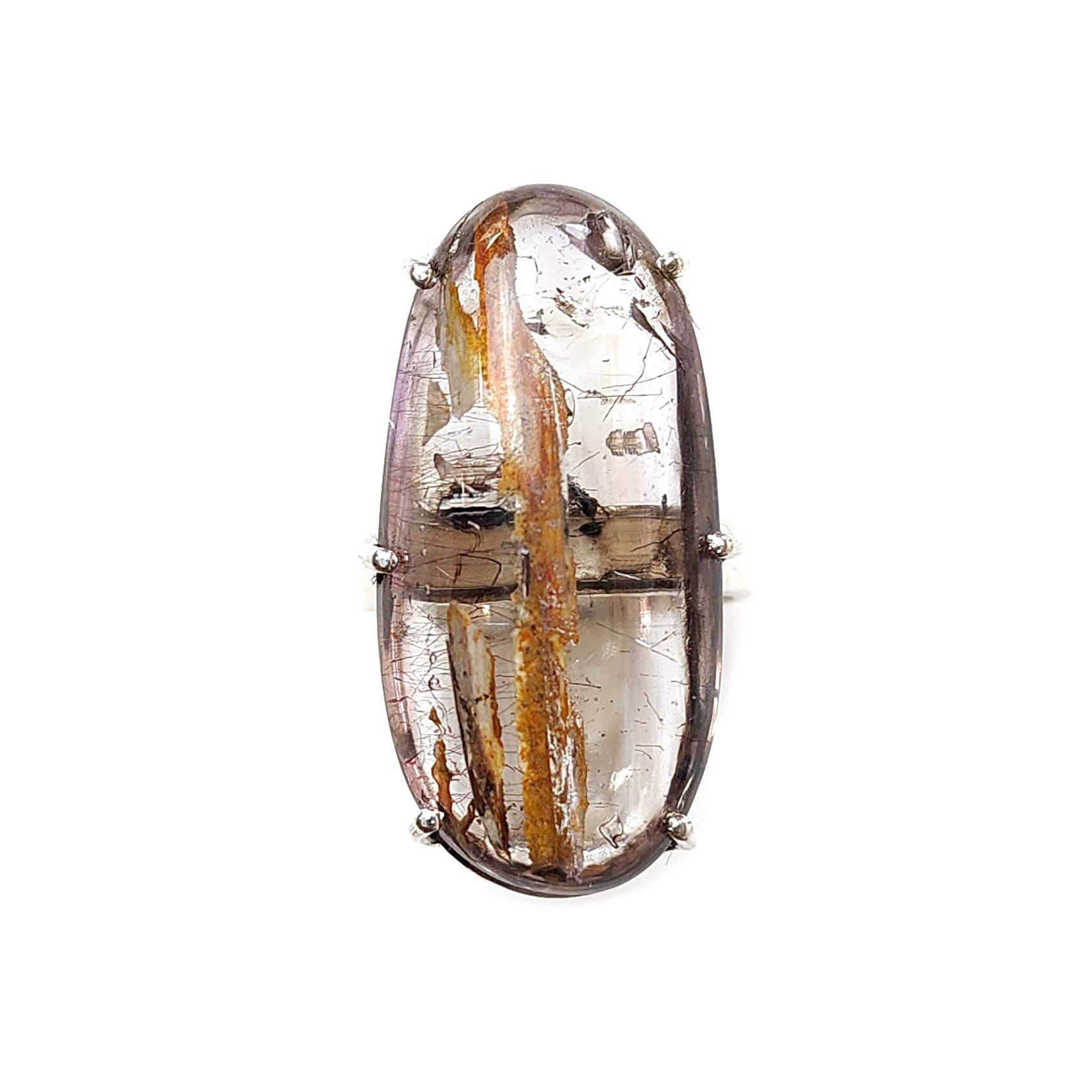 Super Seven Plain Silver Ring: 11.00gms Natural Untreated Amethyst Fancy Shape Plain 925 Sterling Silver Prong Set Adjustable Ring