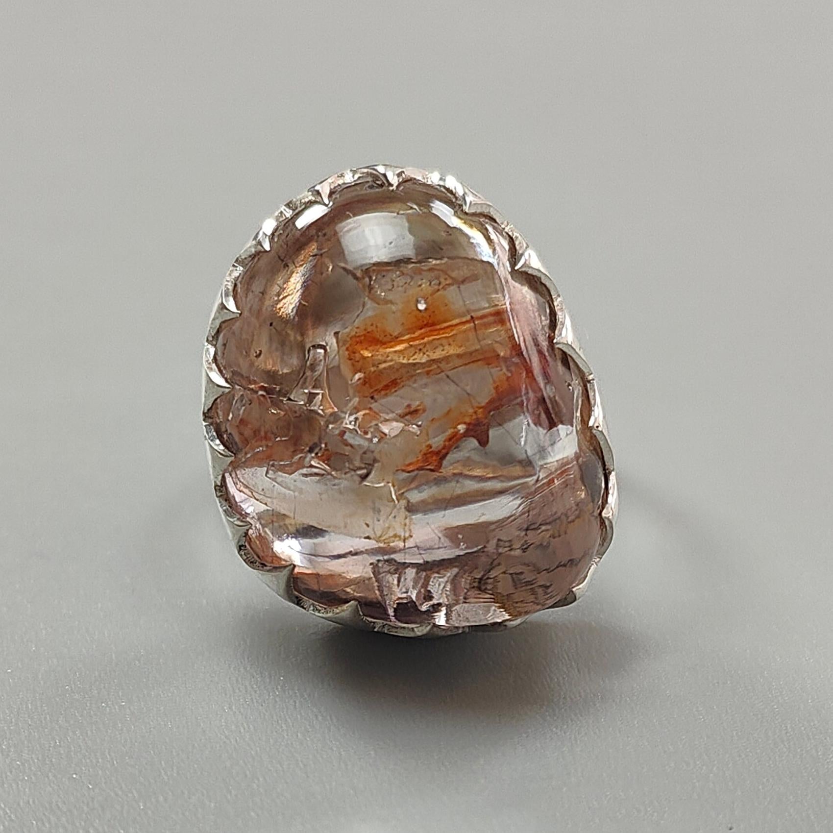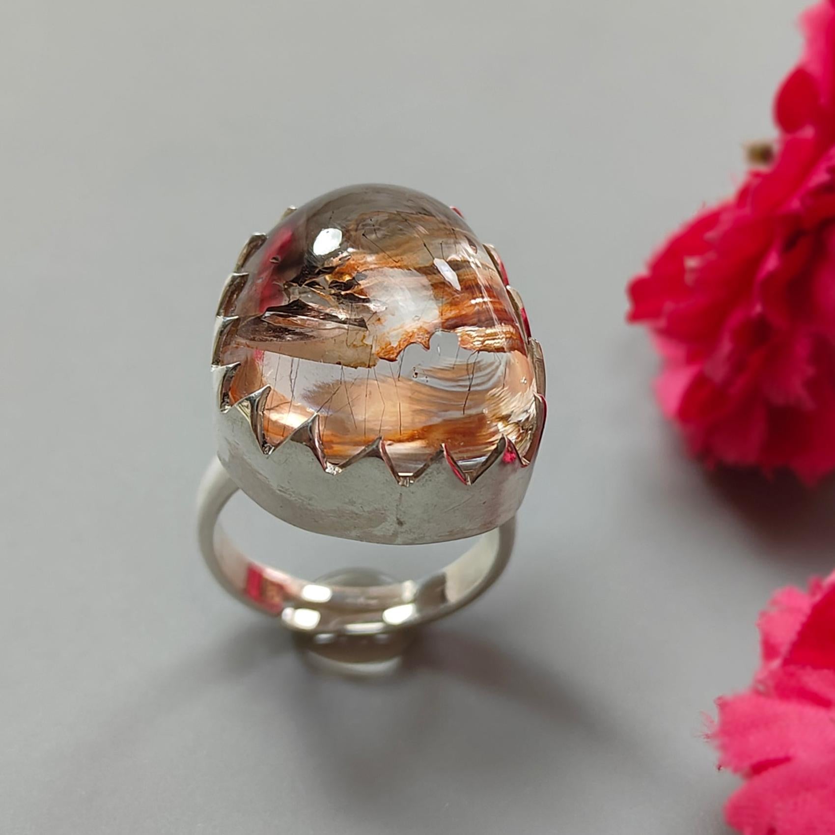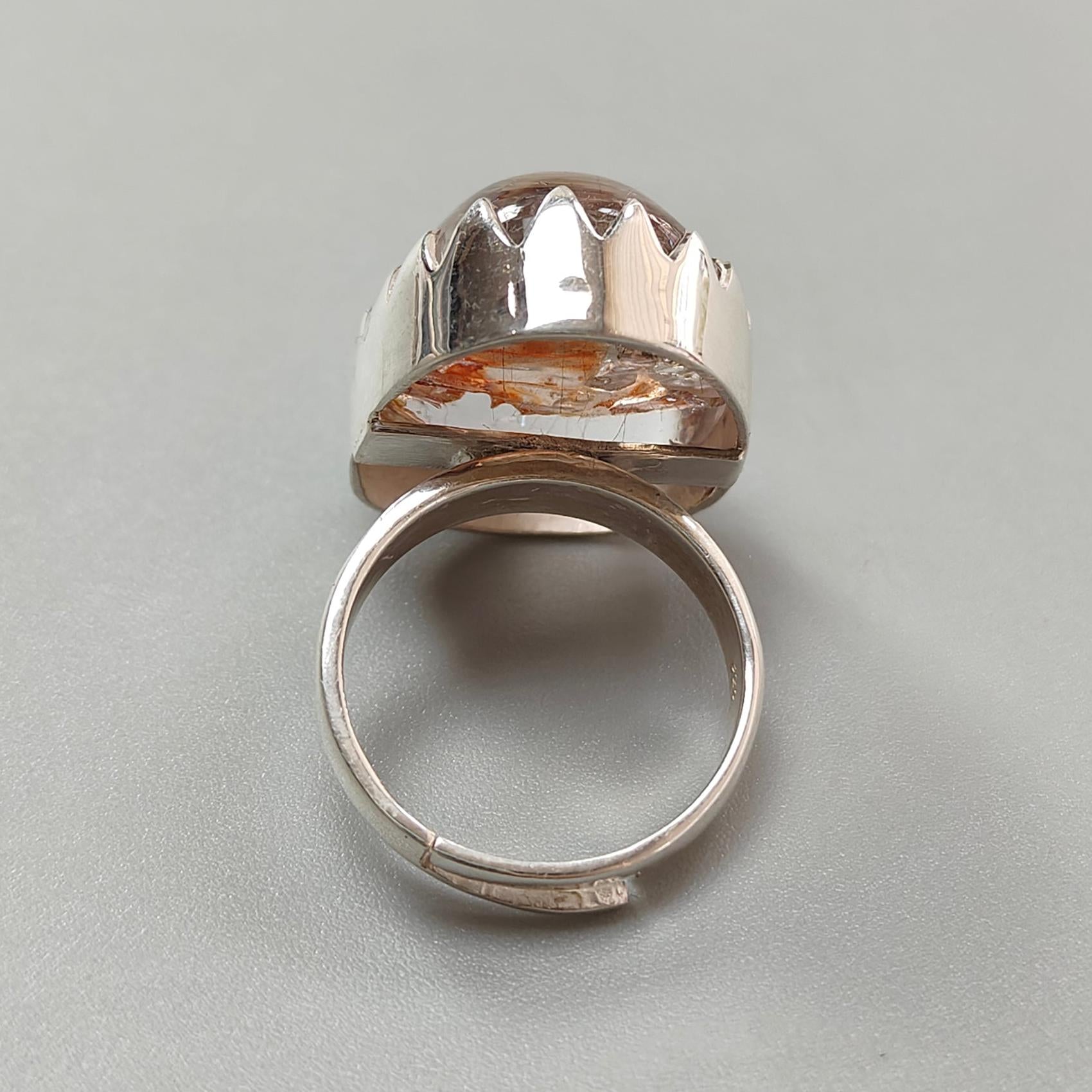 Amethyst Plain Silver Ring: 11.70gms Natural Untreated Super Seven Amethyst Fancy Shape Plain 925 Sterling Silver Bezel Set Adjustable Ring