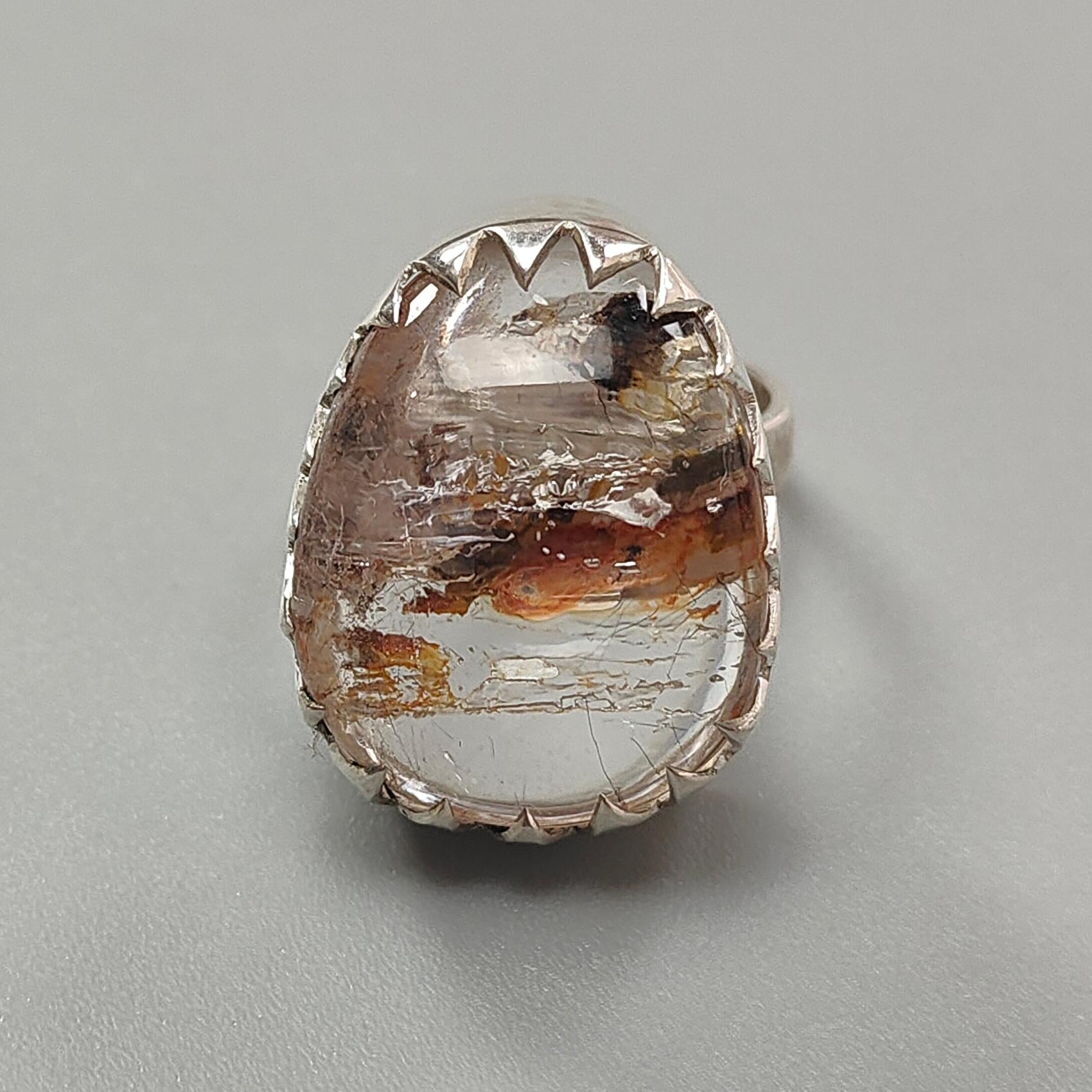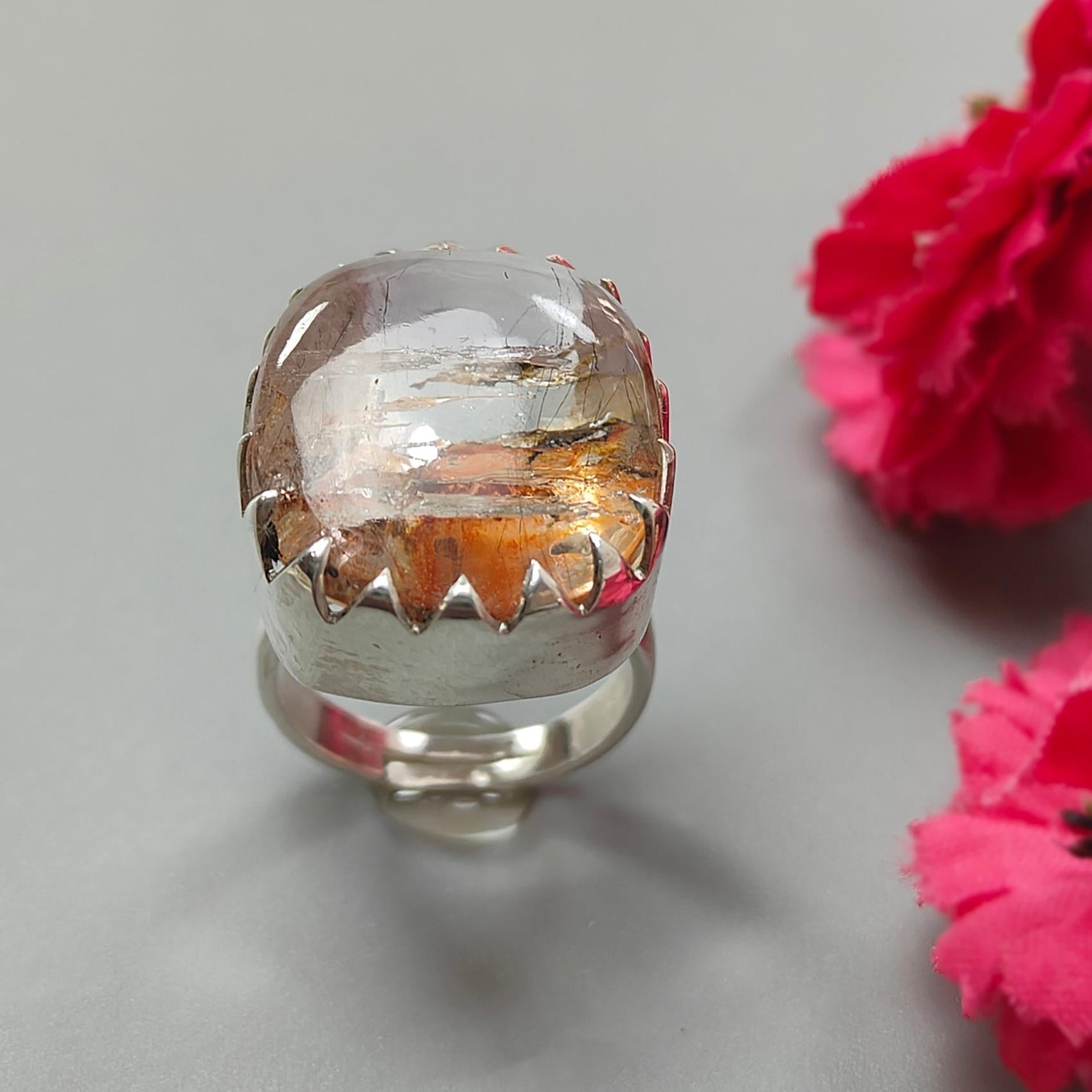 Amethyst Plain Silver Ring: 12.08gms Natural Untreated Super Seven Amethyst Fancy Shape Plain 925 Sterling Silver Bezel Set Adjustable Ring
