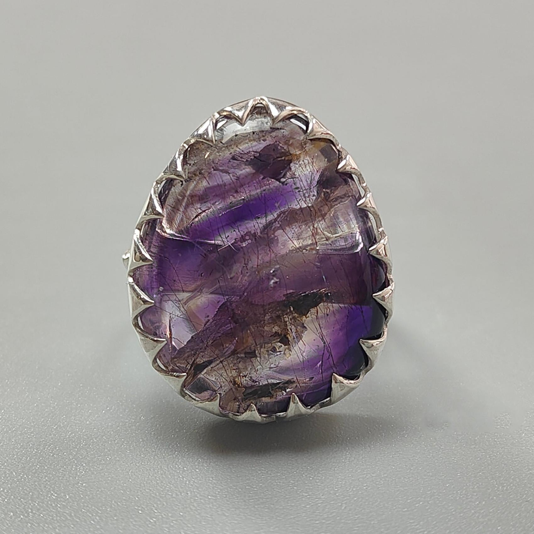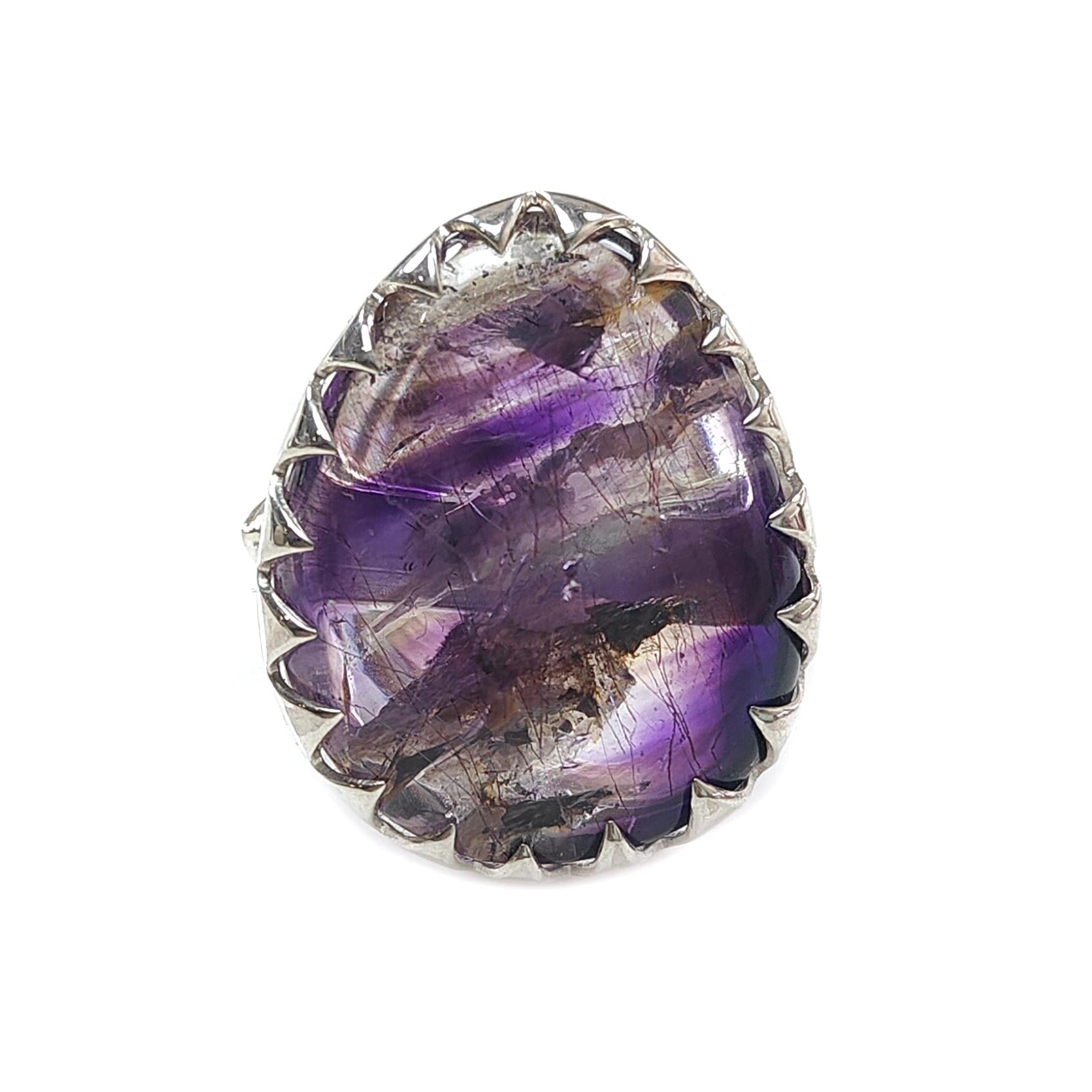 Amethyst Plain Silver Ring: 12.19gms Natural Untreated Super Seven Amethyst Fancy Shape Plain 925 Sterling Silver Bezel Set Adjustable Ring