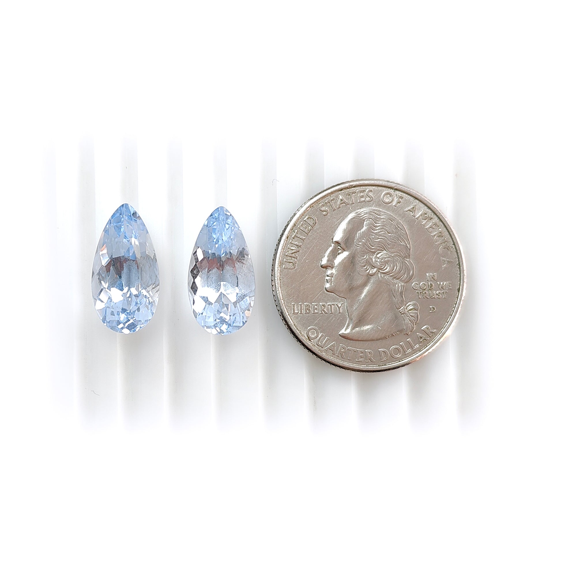 12.50cts Synthetic Manmade Aquamarine Gemstone Faceted Cut Pear Shape Pair